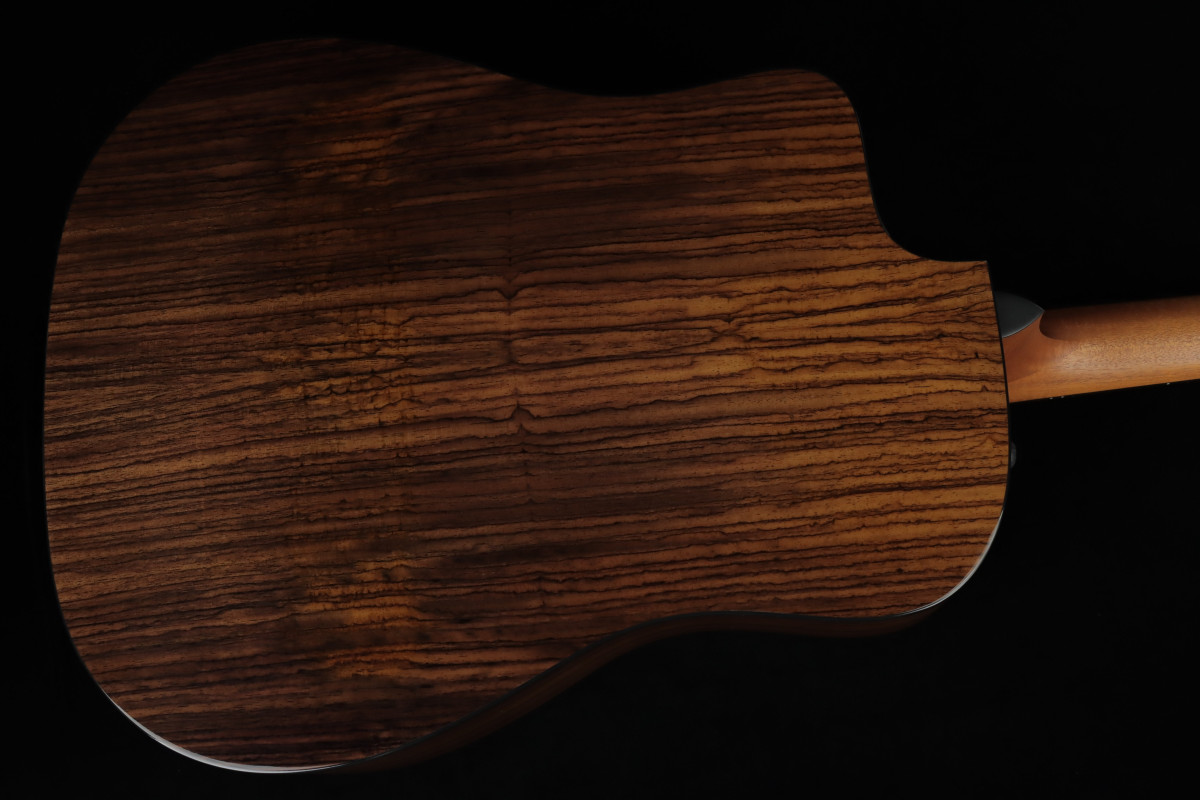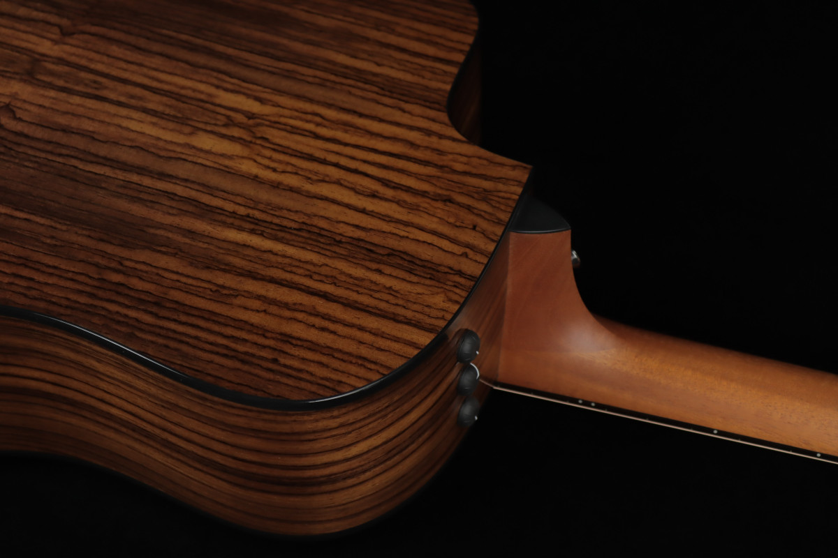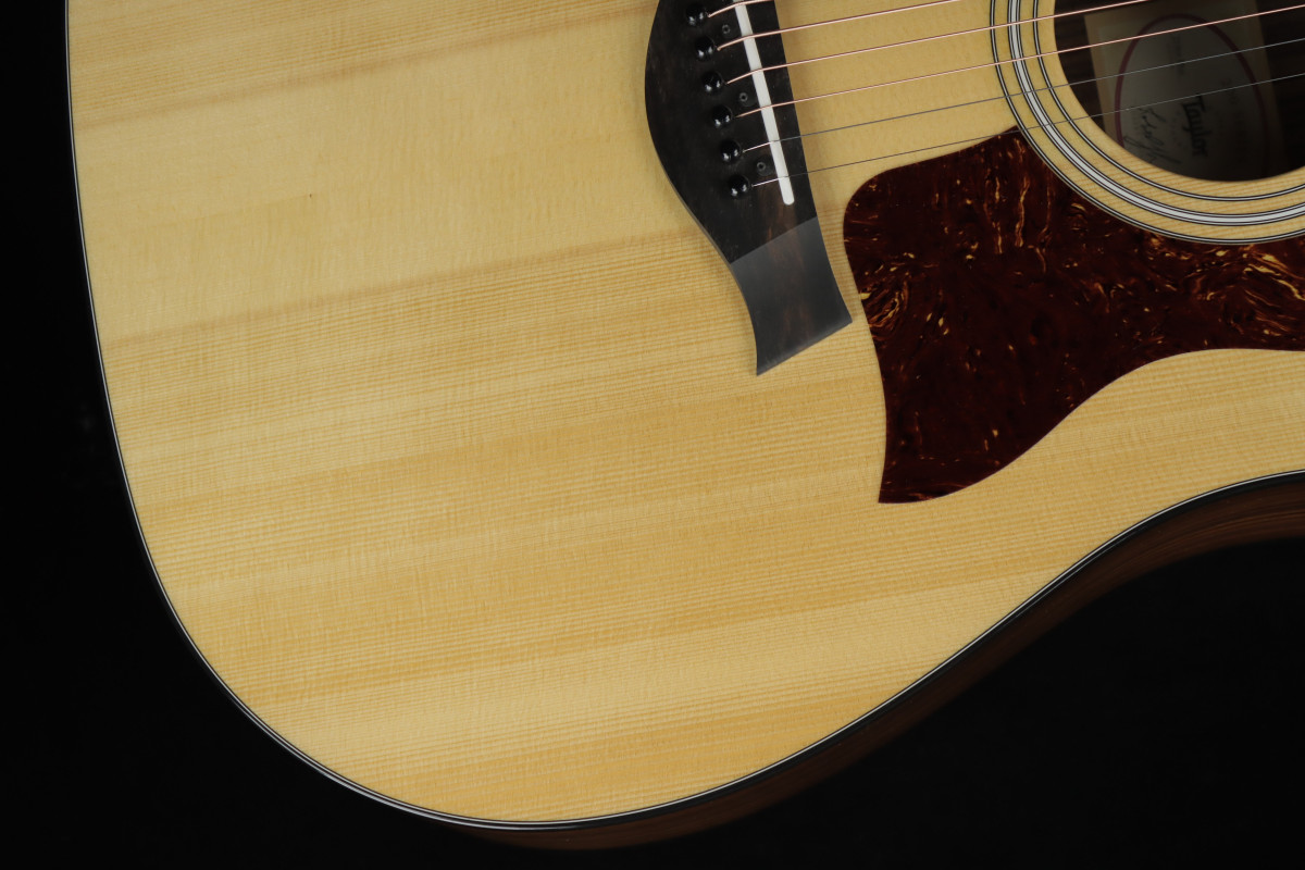Other important technical specifications include an ebony fingerboard, an ebony bridge, and Taylor's ES2 electronics.