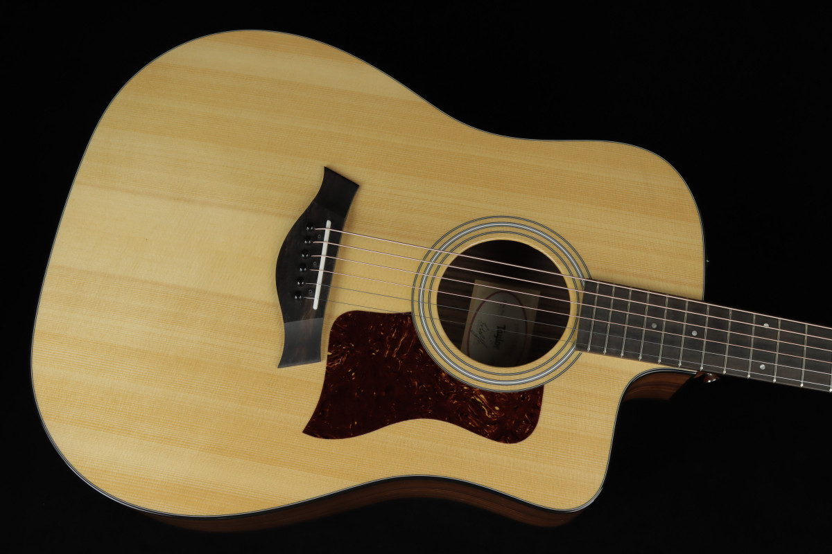The Taylor 210ce Plus features a laminated rosewood back and sides, a material that, when paired with a solid Sitka spruce top, is capable of producing a warm, full, rich tone with deep frequencies, without sacrificing definition and resonance.