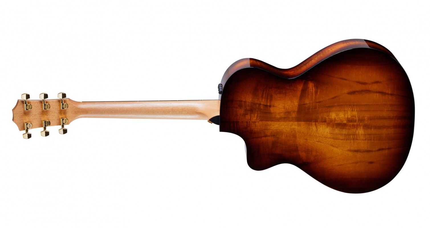 The electronics feature the Taylor Expression System 2, representing the latest evolution of Taylor's electronics. The new sensor is positioned not beneath the bridge like traditional piezo systems, but behind it. This placement reduces pressure on the sensor, resulting in unprecedented sound dynamics. Additionally, this positioning allows for the convenient adjustment of the balance between treble and bass using an easy-to-use hex key.