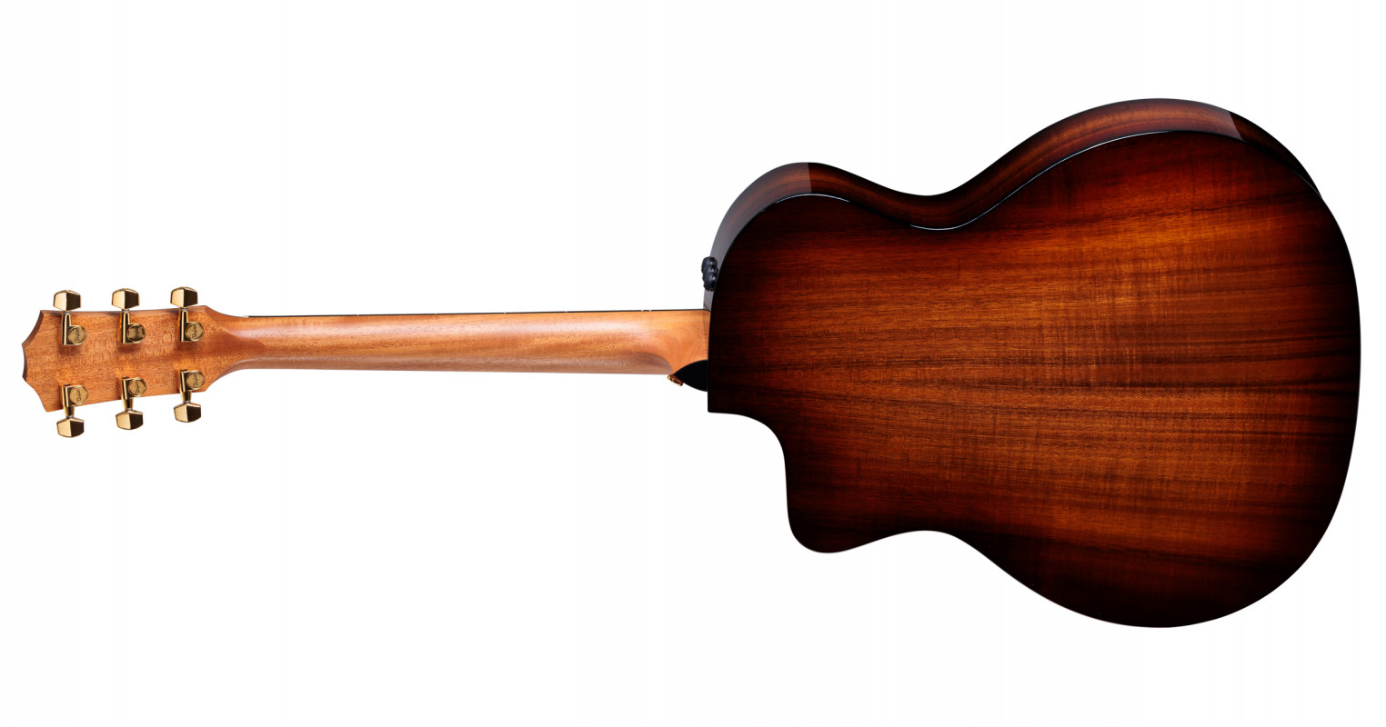 The electronics feature the Taylor Expression System 2, representing the latest evolutionary step in Taylor's electronics. The new sensor is not positioned like traditional piezo systems, which are placed under the bridge, but is located behind it. This design reduces the load on the sensor, allowing for unprecedented dynamic range in the sound. Additionally, this positioning has made it possible to include an adjustment feature, using a convenient Allen wrench, to balance the treble and bass frequencies.