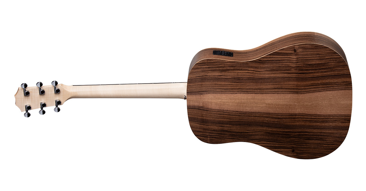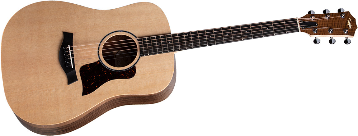 The older sister of the Baby Taylor, the Big Baby, is an elegant travel companion with a full sound and a 4" (10cm) body, about one centimeter shallower than a standard Dreadnought.