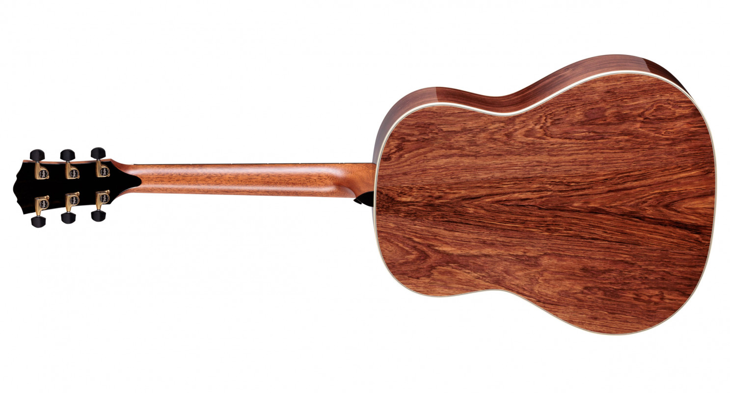 The top is made of Adirondack spruce, paired with solid Honduras rosewood back and sides, a highly sought-after and exquisite material. The bracing has also been revised: it features a Fanned V-Class bracing, a variant of the already innovative V-Class, which enhances the instrument's intonation and sustain.
