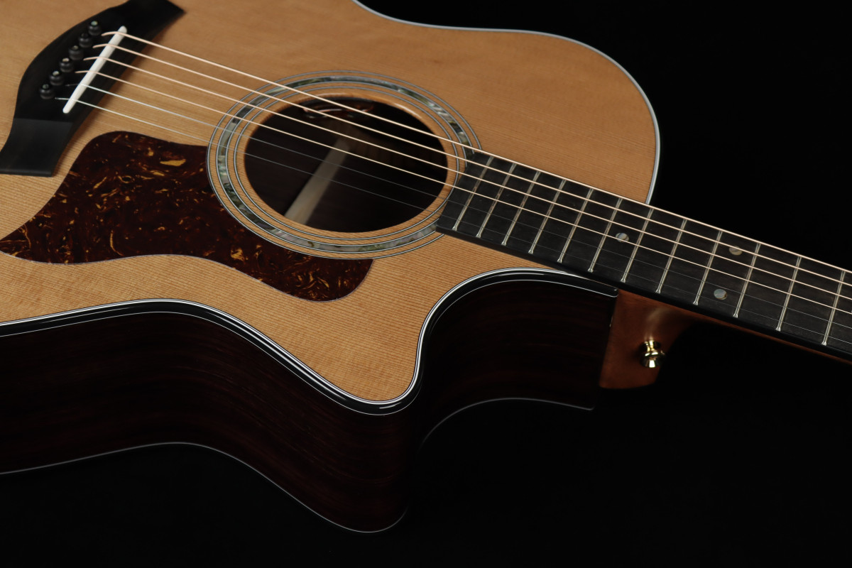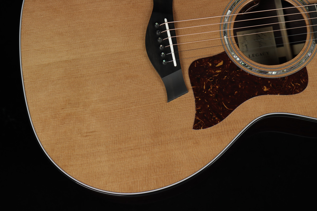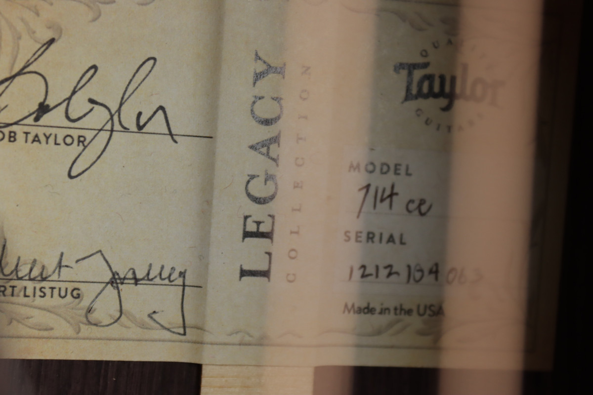 Built to honor the innovative spirit that drove Bob Taylor's guitar designs dating back to the early years, the Legacy 714ce celebrates the Grand Auditorium body shape that Bob introduced to the world in 1994. This model boasts a tonewood pairing not currently found in the standard Taylor line: Indian rosewood back and sides with a Western Red cedar top, voiced with the same X-bracing pattern used in the first Grand Auditorium guitars.