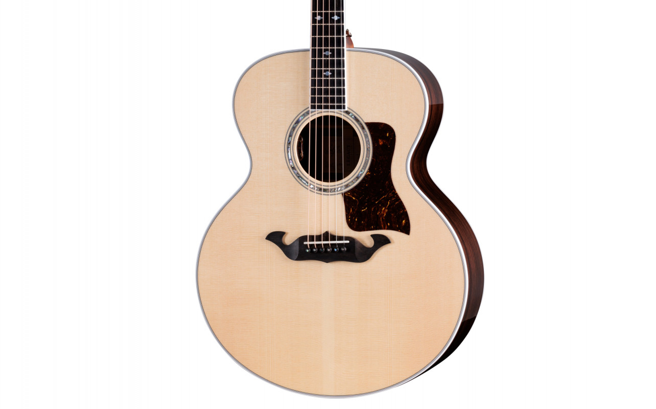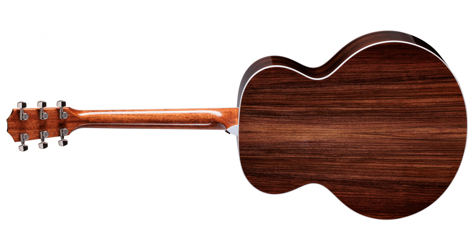 The Legacy 815e stands alone in the Taylor line as a Jumbo, non-cutaway acoustic-electric that blends elements of Bob Taylor's original designs with subtle upgrades to provide a modern feel. This model is crafted with back and sides of solid Indian rosewood paired with a Sitka spruce top in a big, powerful body that yields a commanding voice. Featuring the traditional X-bracing pattern favored by Bob in the early days, the 815e serves up a warm, richly textured sound with clear trebles, throaty lows and a slight scoop in the midrange, all complemented by beautifully blooming overtones. A modern Taylor neck profile offers a hand-friendly feel and relaxed fretting, while older elements like the mustache bridge and a "straight-ear" peghead silhouette capped with a rosewood veneer.