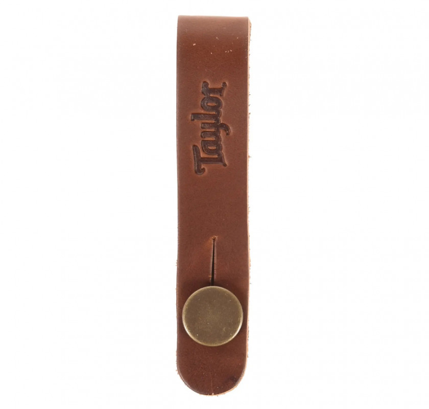 The Taylor Suede Strap Adapter, featuring an embossed Taylor logo, allows you to securely attach your strap to your Taylor guitar with style and comfort.