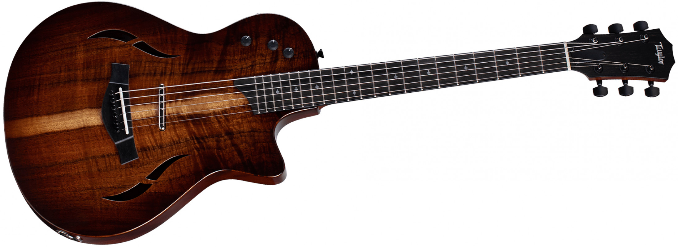 In terms of feel, the T5z Classic boasts a fast-playing response thanks to its 12" fretboard radius and jumbo frets. Aesthetic details include Small Diamond fretboard inlays, unbound F-holes and a striking koa top with a subtle edgeburst finish. This model ships with a lightweight, sturdy AeroCase.