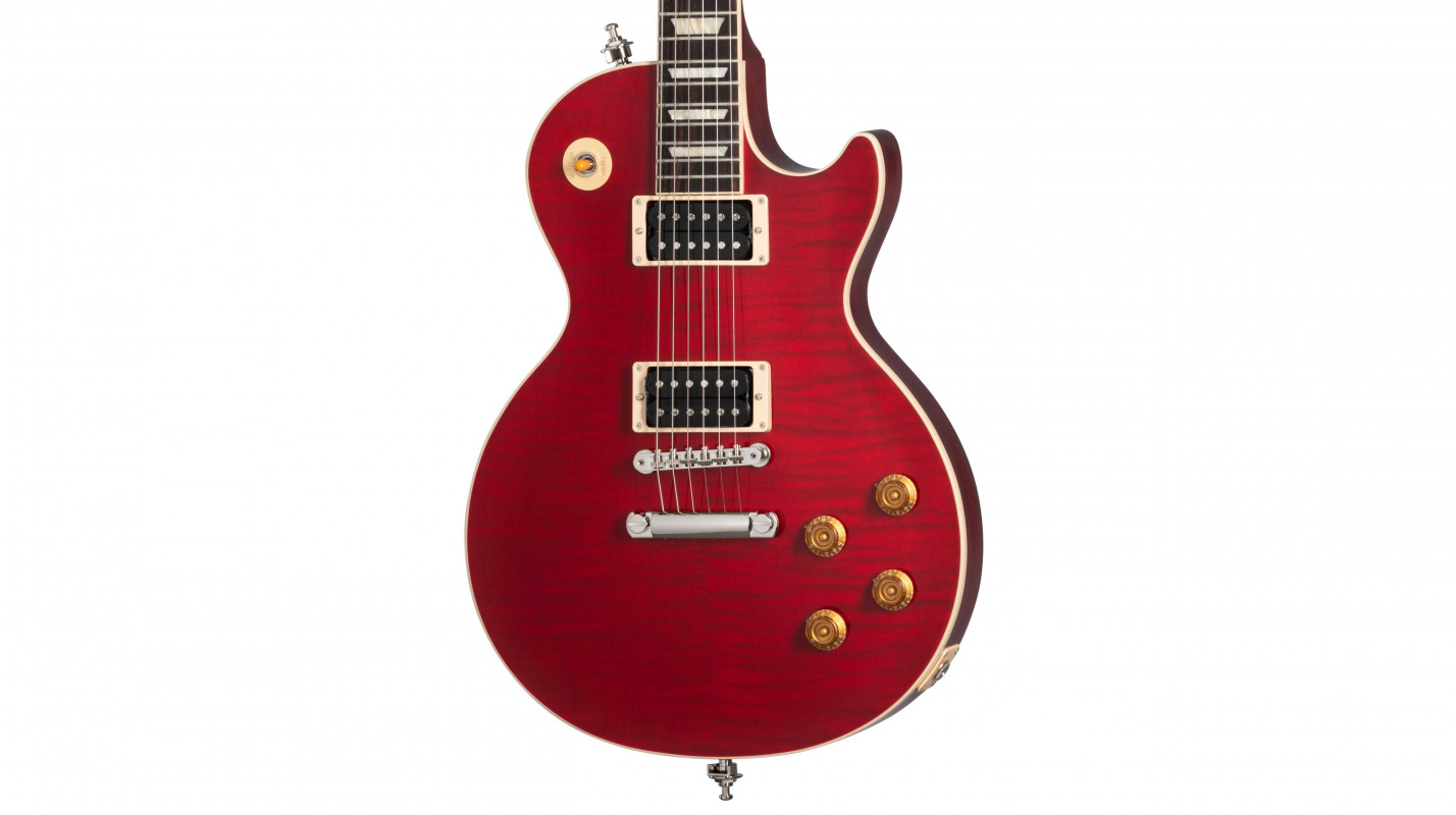 La Slash Les Paul Standard Limited "4" Album Edition è dotata di un top in acero fiammato AAA, corpo in mogano massello, profilo del manico 50s Vintage, una coppia di pickup Gibson Custom BurstBucker™ Alnico 2 ed elettronica cablata a mano con condensatori Orange Drop®.