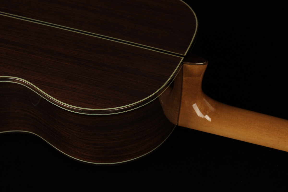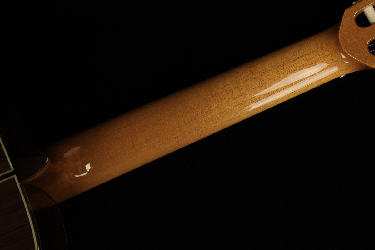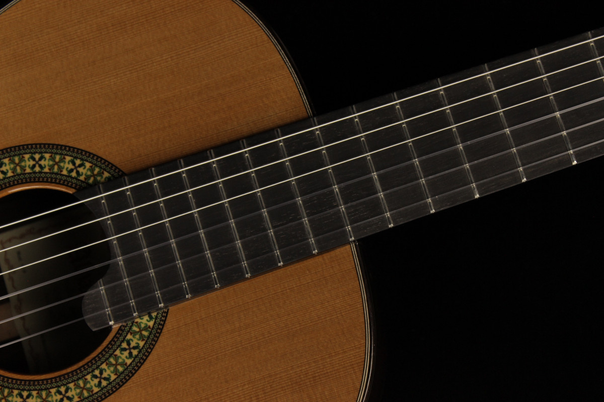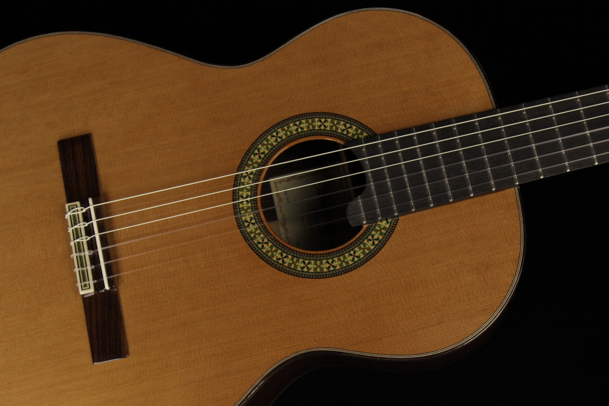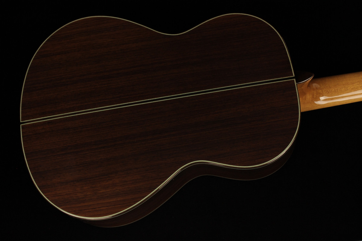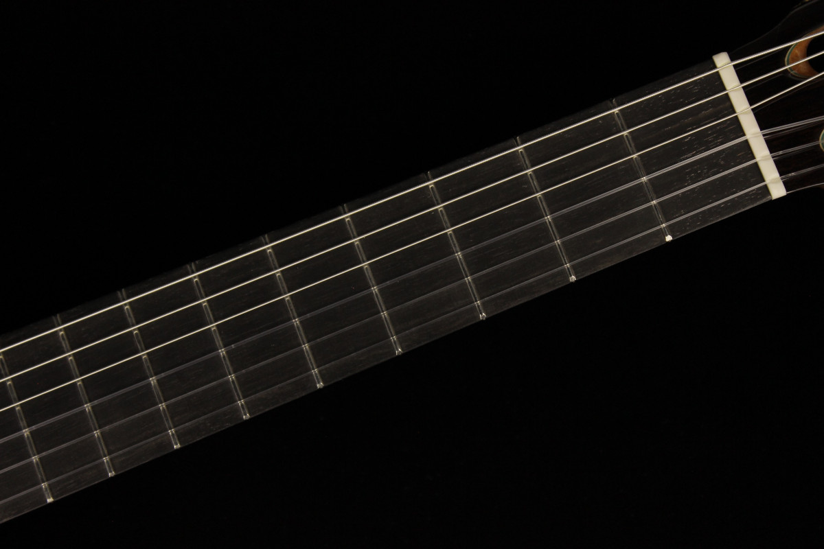 L'Alhambra 11P è caratterizzata da un fondo e fasce in palissandro massello abbinato ad una tavola in cedro massello, capotasto e ponte in osso, e da una sottilissima finitura alla nitrocellulosa.