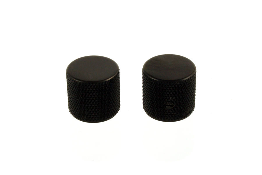 Set di due manopole in metallo con viti. Parte superiore appiattita. Adatto a potenziometri USA (3/4" x 3/4").