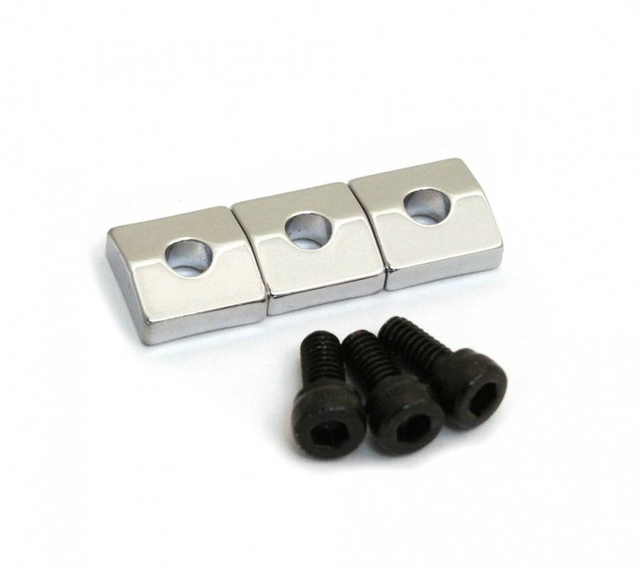 Set di tre blocca capotasto per Floyd Rose® e Schaller Locking Nuts, con viti. Misure 15/32" x 7/16", viti da 3mm.