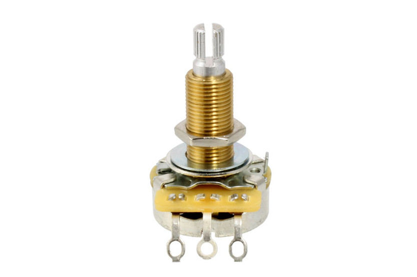Potenziometro CTS logaritmico da 500K a gambo lungo. Lunghezza 3/4", include hardware di montaggio. Installato su molte chitarre Gibson® Les Paul® moderne.