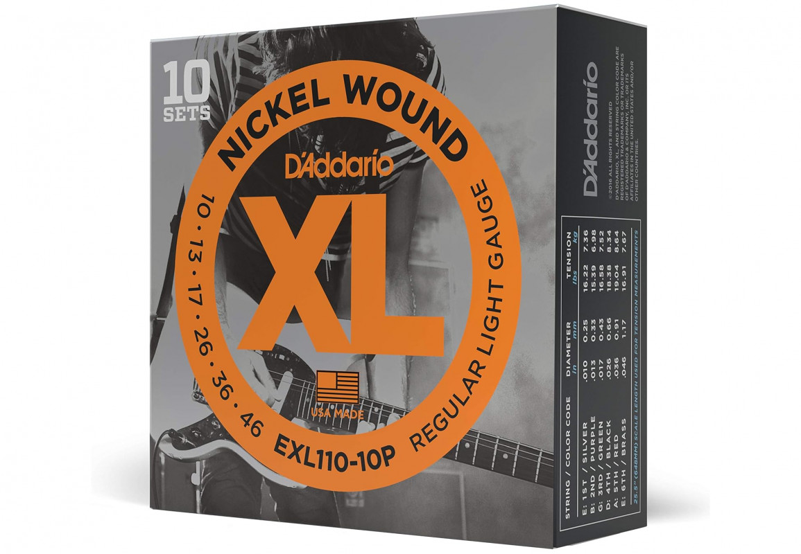 D'Addario EXL110-10P Nickel Wound, Regular Light, 10-46, 10-Pack
