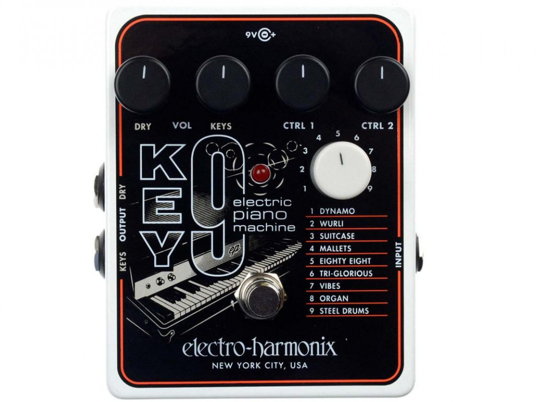 Il KEY9 dispone anche di vivaci riproduzioni di vibrafono, mallet, di un organo, e anche percussioni d'acciaio. Basato sui popolari pedali EHX B9 e C9, il KEY9 si sposta nel territorio elettro-acustico tramite manopole che controllano il volume DRY e KEY, così come specifiche caratteristiche di preset, che sono regolati dalle manopole CTRL 1 e CTRL 2.