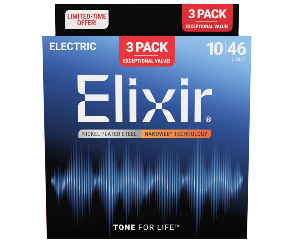 Elixir 16567 Nanoweb Electric Light 10/46 3-Pack