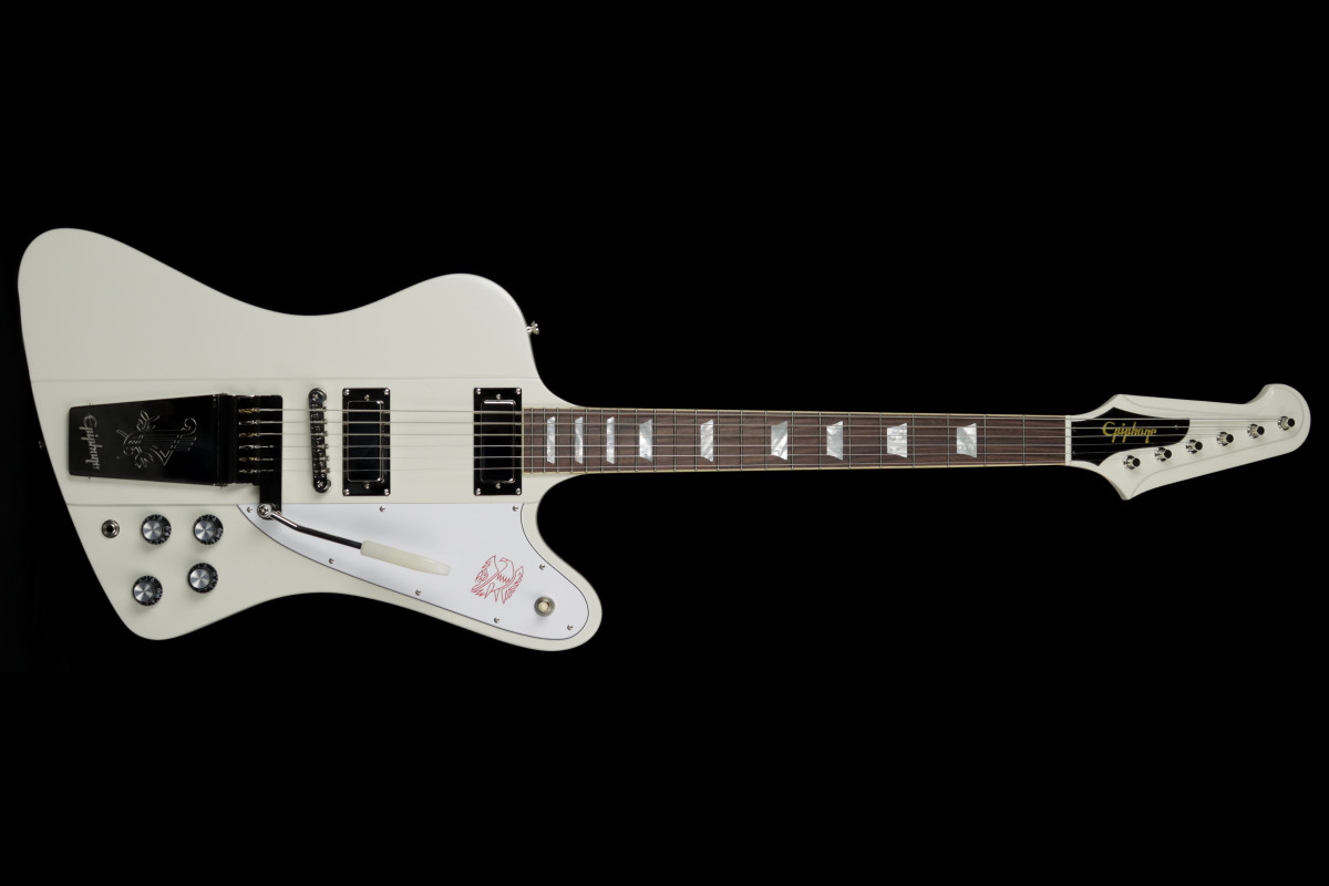 La Epiphone 1963 Firebird V Maestro Vibrola Reissue fa parte della Inspired by Gibson Custom Collection ed è una reinterpretazione fedele della celebre Firebird V realizzata nei laboratori del Gibson Custom Shop, proposta ad un prezzo decisamente più accessibile.