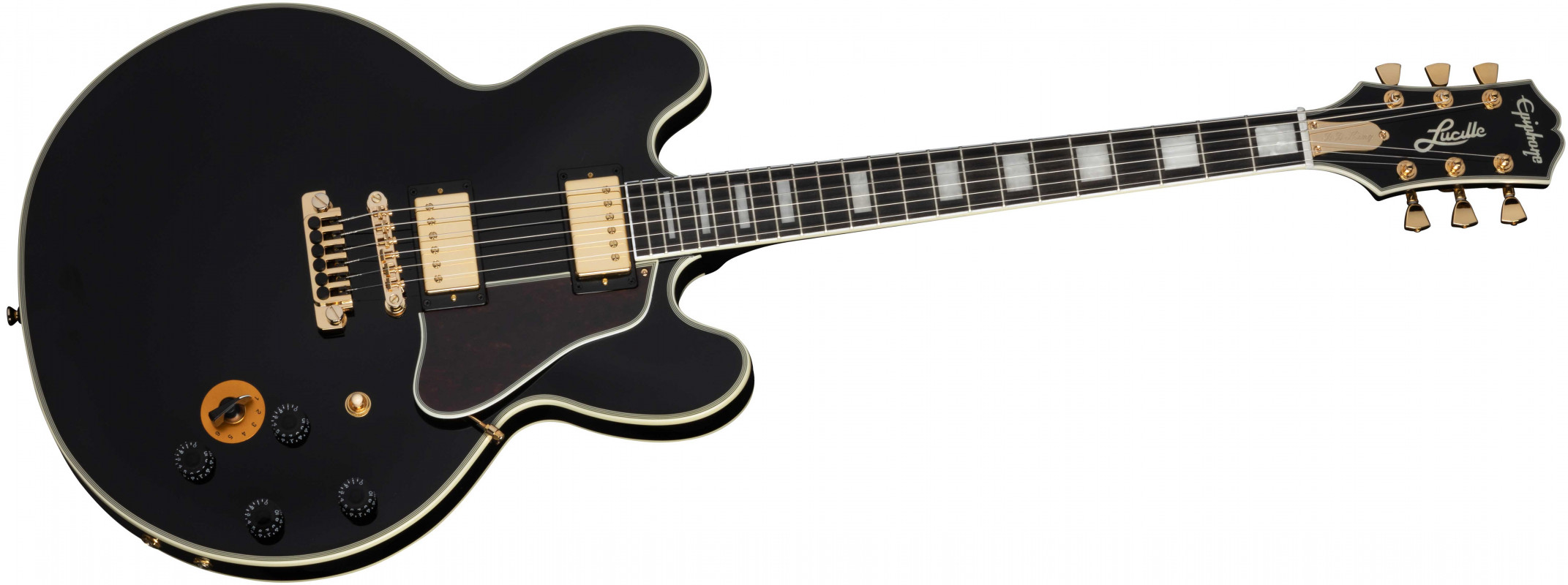 Epiphone presenta un modello celebrativo della leggenda blues B.B. King. Questa stupenda chitarra semi acustica è basata sullo strumento utilizzato da Mr. King e nominato "Lucille". Una chitarra che ha accompagnato B.B. King in tutta la sua carriera, fin alla sua morte nel 2015.