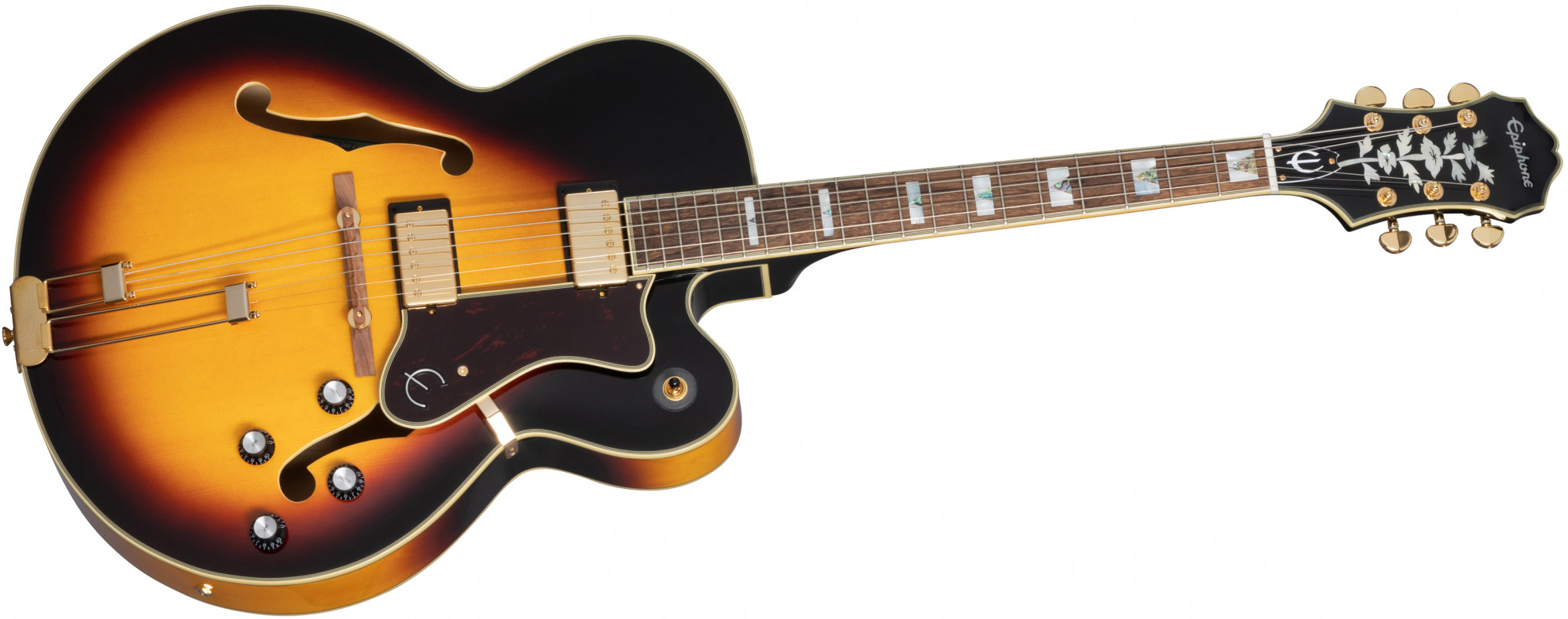 Oggi Epiphone rinnova il modello presente a catalogo con questa nuova versione caratterizzata da bellissime finiture, pickup Alnico Classic PRO™ Humbuckers™, tailpiece Frequensator™ Split Trapeze e intarsi in abalone e madreperla.
