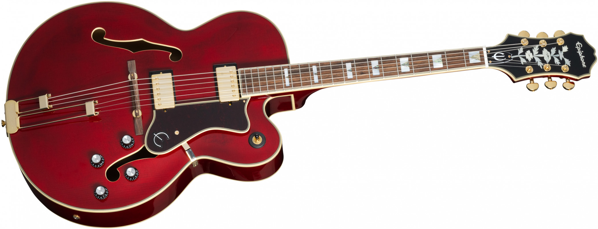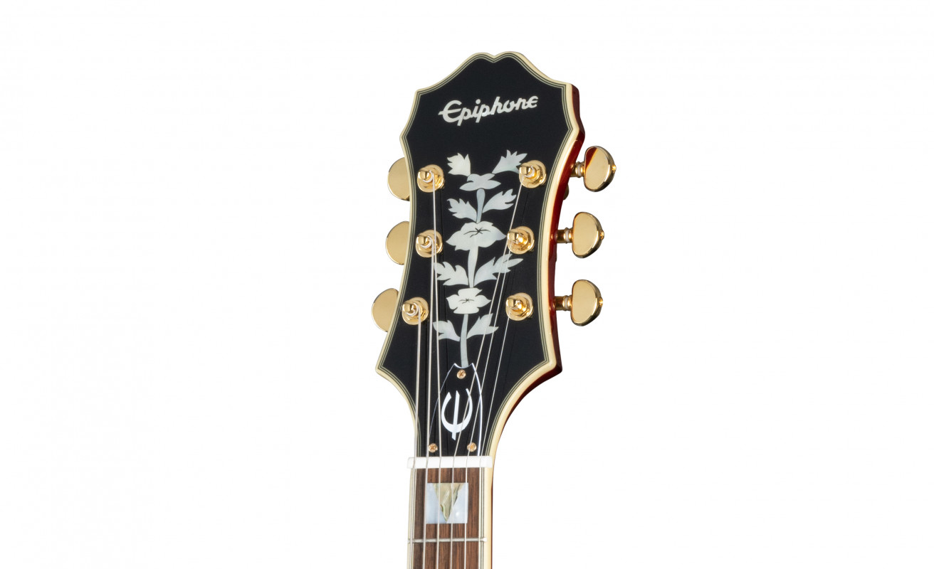 Oggi Epiphone rinnova il modello presente a catalogo con questa nuova versione caratterizzata da bellissime finiture, pickup Alnico Classic PRO™ Humbuckers™, tailpiece Frequensator™ Split Trapeze e intarsi in abalone e madreperla.