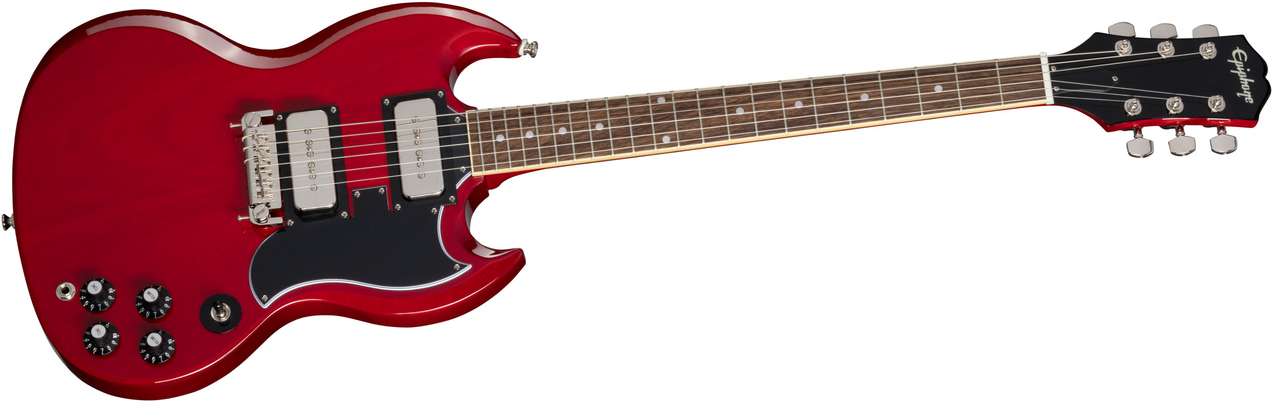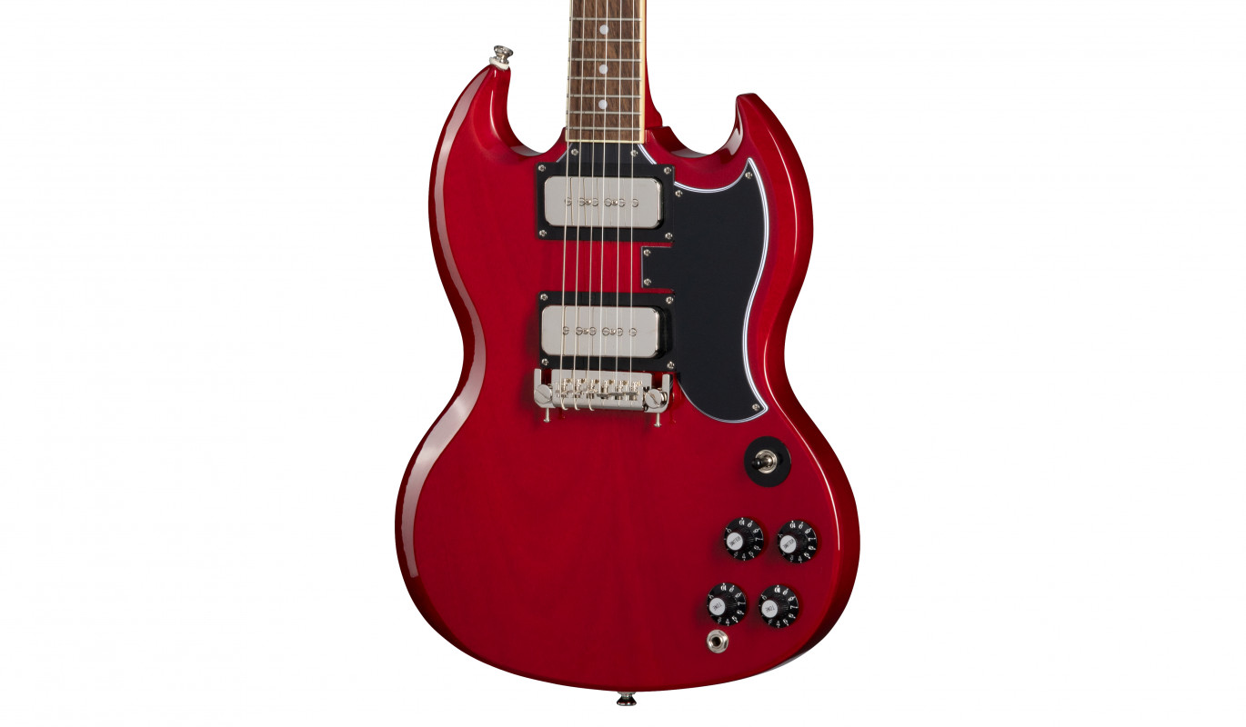 La Epiphone Tony Iommi "Monkey" SG Special presenta un corpo in mogano in 2 pezzi, manico in mogano con profilo Rounded Iommi "C", tastiera in laurel indiano da 22 tasti, pickup Epiphone PRO P-90, meccaniche Grover® Rotomatic®.