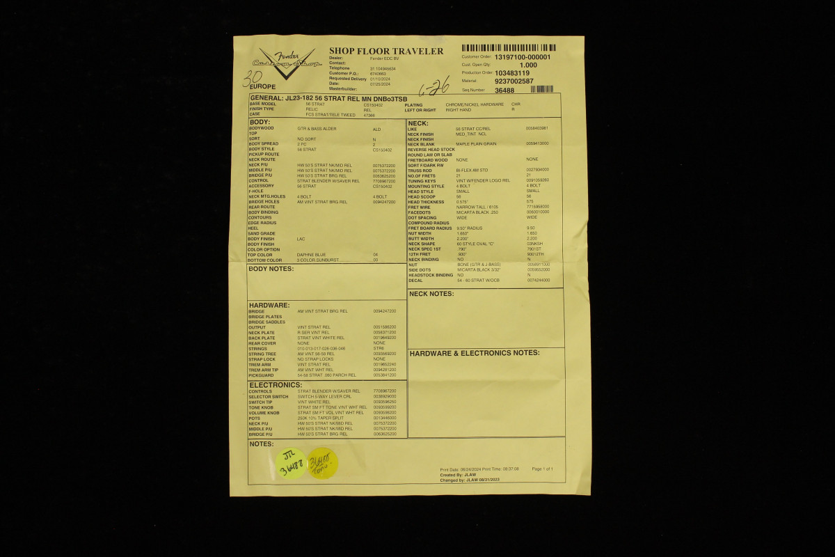 Questa Fender Custom Shop ripropone i canoni estetici delle Stratocaster prodotte nel 1956, portando però alcune migliorie tecniche che contribuiscono a darle un'impostazione più contemporanea.