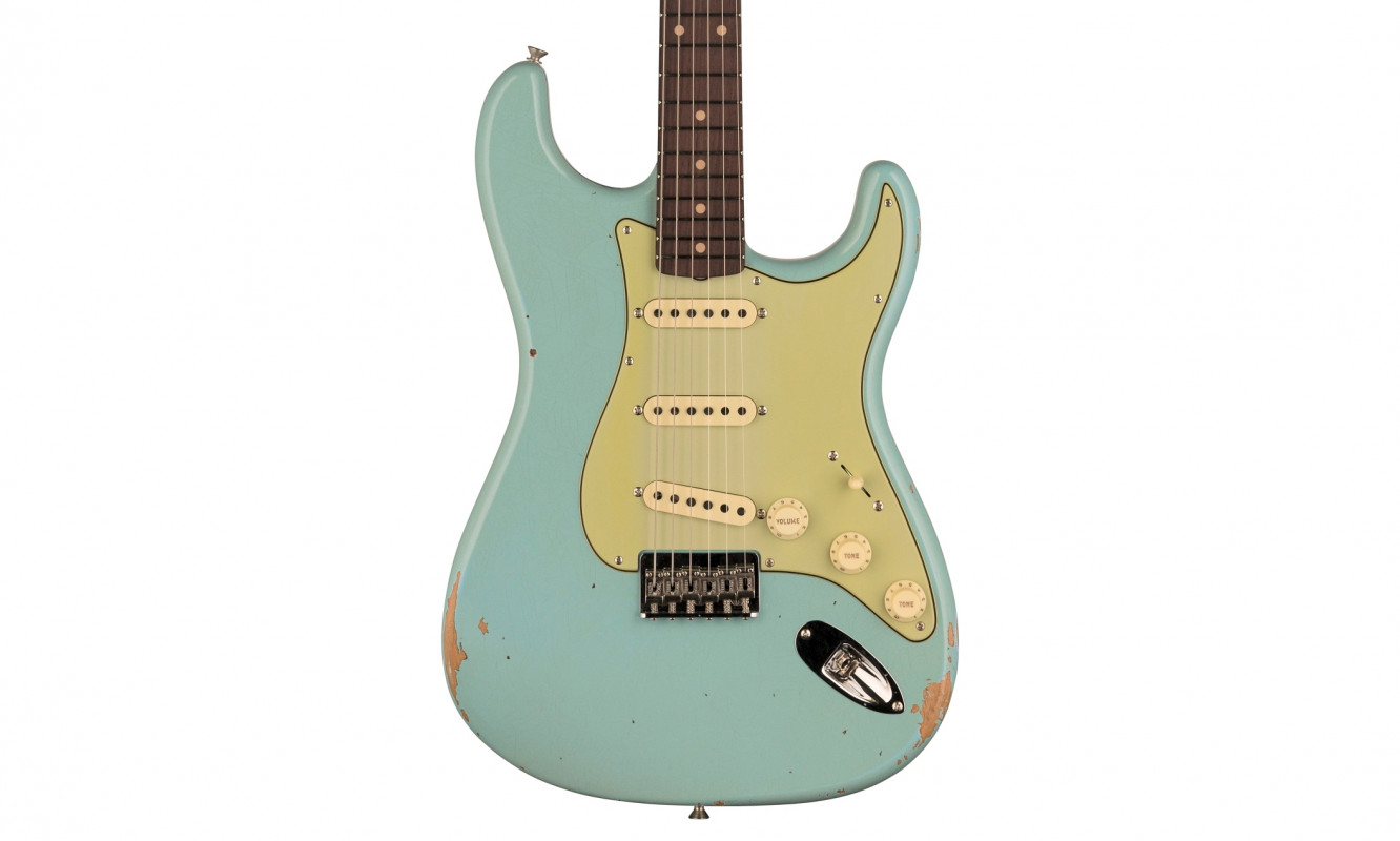 Questa Fender Custom Limited Edition '59 Stratocaster Hardtail Relic in finitura Aged Daphne Blue si configura come una Stratocaster tradizionale, ispirata alle originali degli anni '60, con specifiche tecniche piuttosto coerenti con l'epoca e qualche ritocco che le conferisce contemporaneità.