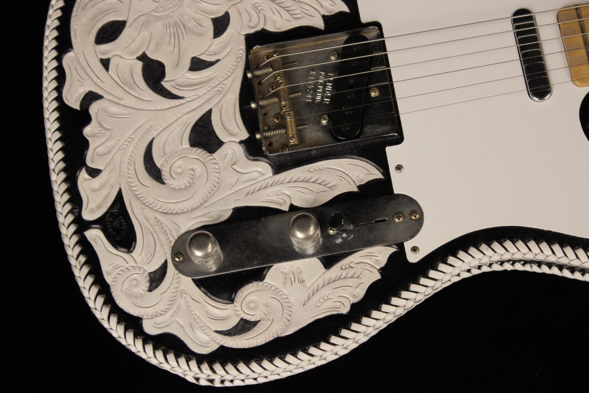 Inconfondibile la sua Telecaster del 1954 ricoperta in pelle, strumento ambito dai collezionisti e fino ad oggi mai realizzato da Fender con questa accuratezza.