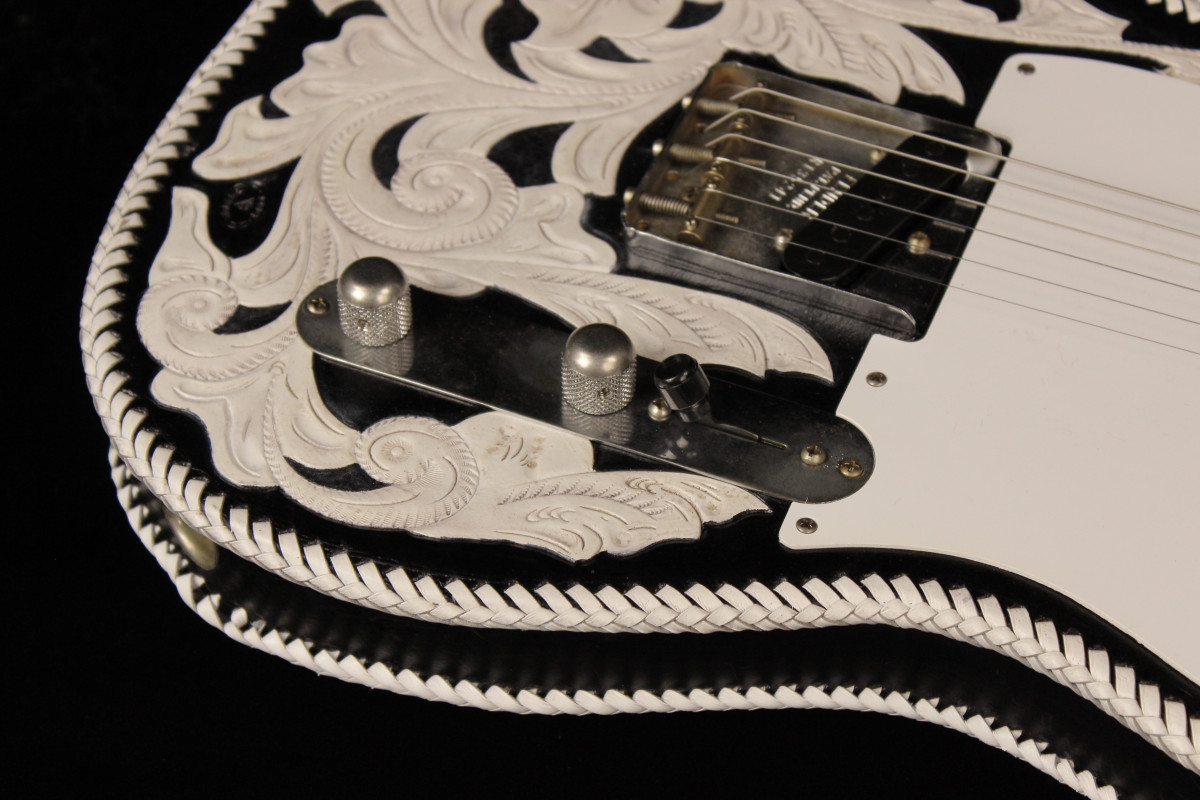 Il Masterbuilder David Brown ha collaborato con la famiglia di Jennings per ricreare l'iconica Telecaster, riproducendo ogni dettaglio tecnico estetico: il risultato è uno strumento unico nel suo genere, con un corpo completamente rivestito in pelle lavorata ed intrecciata.