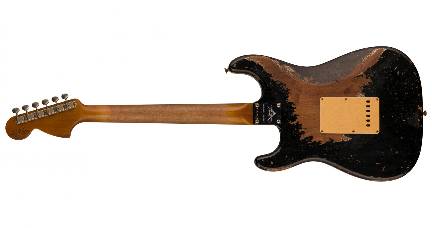 Questa Fender Custom Limited Edition Roasted "Bighead" Stratocaster Super Heavy Relic in finitura Aged Black è caratterizzata da un classico corpo in ontano Roasted selezionato per leggerezza, estremamente risonante, con un attacco poderoso e frequenze medie enfatizzate, da un manico in acero Roasted con taglio Quartersawn dotato di un confortevole profilo 1963 "C".