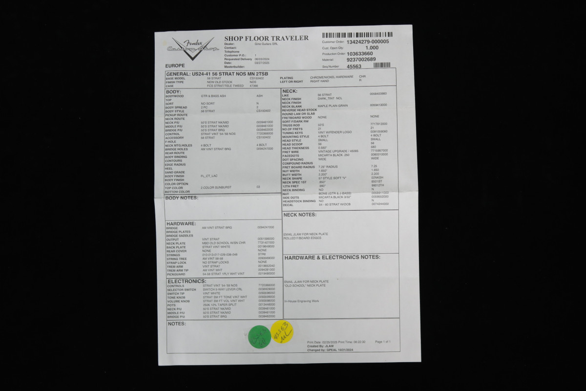 Certificato | Certificato d'autenticità Fender Custom Shop |