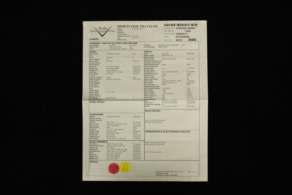 Certificato | Certificato d'autenticità Fender Custom Shop |