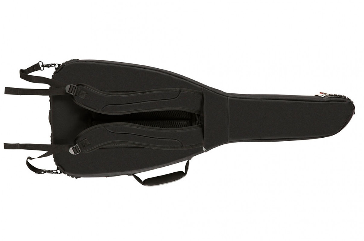 L'interno con un'imbottitura da 20mm rifinita in morbida microfibra mantiene lo strumento sicuro scongiurando danni alla finitura. All'interno della borsa inoltre troviamo un supporto per manico regolabile.