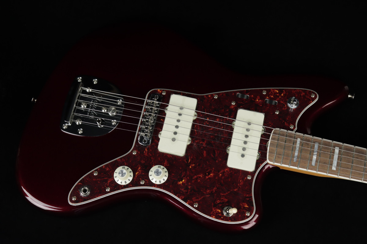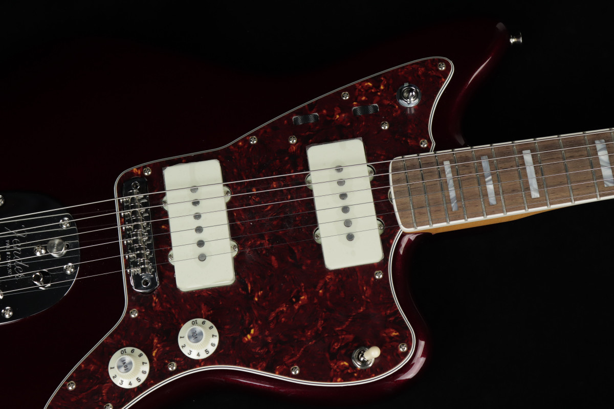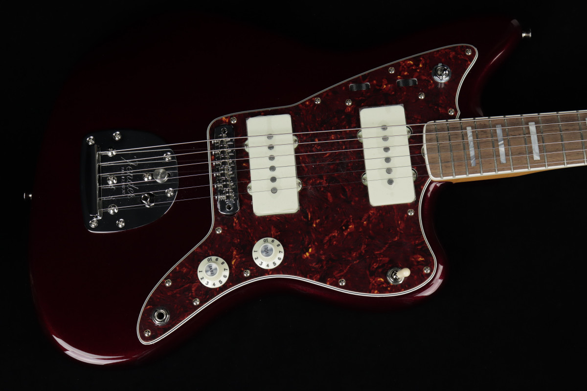 Altre particolarità includono un manico in acero con profilo "C", una regolazione del truss rod heel-end, tastiera in palissandro con raggio di 7,25" e 21 tasti stile vintage e intarsi a blocco neri, due pickup single-coil American Vintage ’65 Jazzmaster con commutatore a tre vie e meccaniche stile vintage. L'astuccio rigido è incluso.