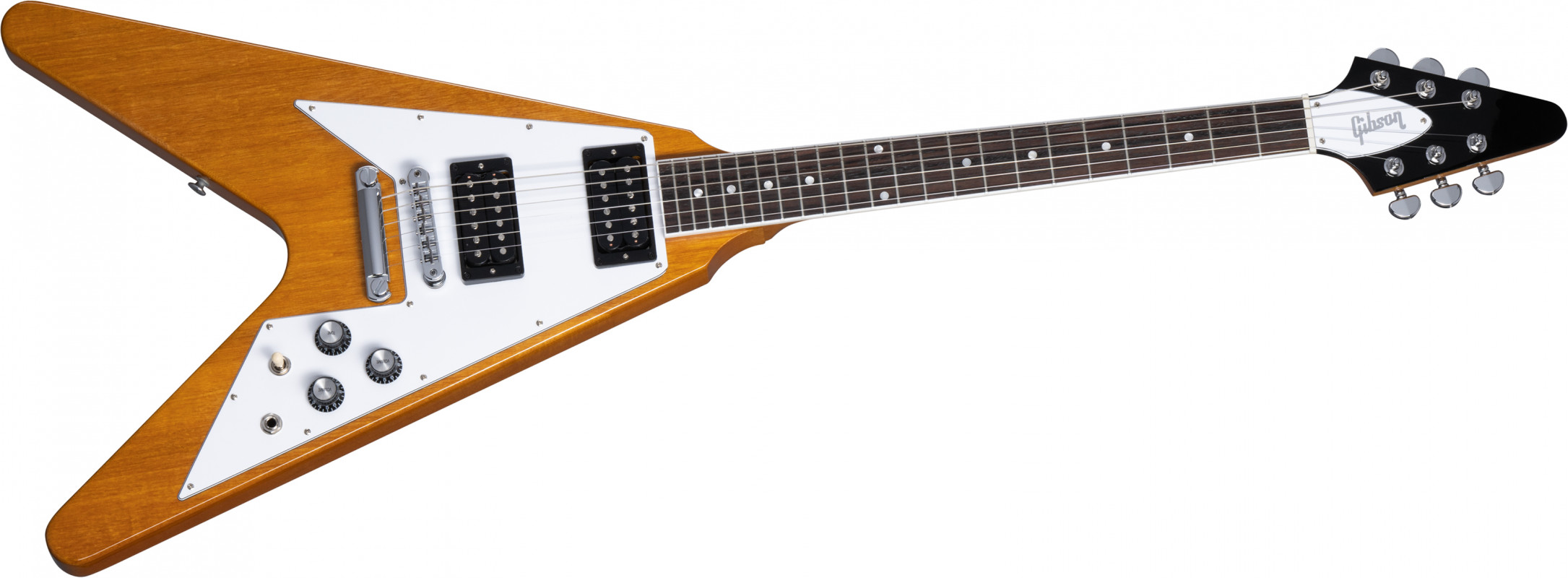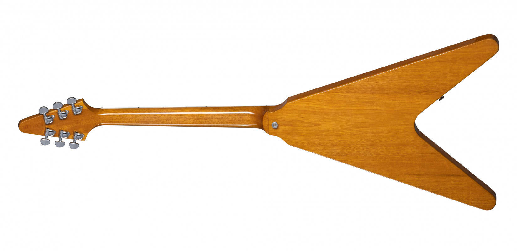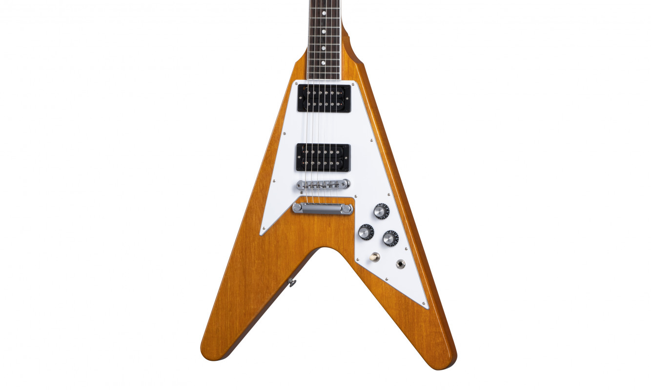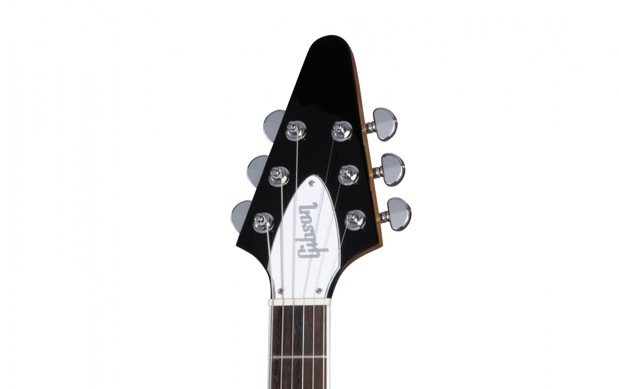 La Gibson 70's Flying V riprende le caratteristiche introdotte da Gibson nel corso degli anni ’70, periodo in cui questo modello consolidò la propria identità estetica e sonora. Evoluzione di un progetto nato alla fine degli anni ’50, la Flying V si distingue per il design del corpo e per una configurazione orientata a sonorità decise e dirette, in linea con il linguaggio musicale dell’epoca.