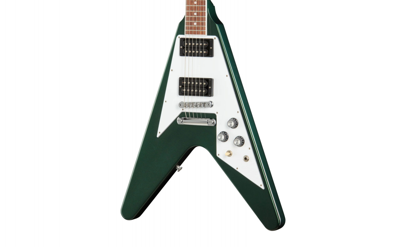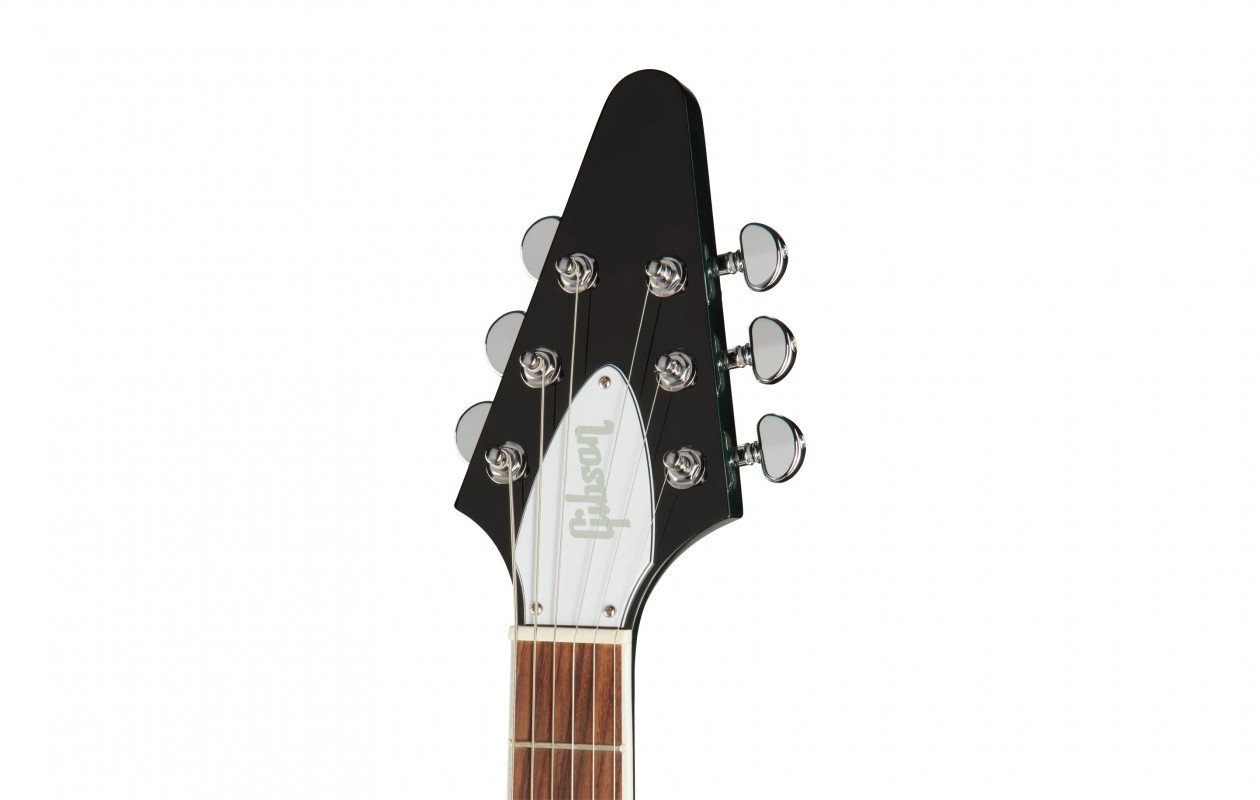 La Gibson 70's Flying V riprende le caratteristiche introdotte da Gibson nel corso degli anni ’70, periodo in cui questo modello consolidò la propria identità estetica e sonora. Evoluzione di un progetto nato alla fine degli anni ’50, la Flying V si distingue per il design del corpo e per una configurazione orientata a sonorità decise e dirette, in linea con il linguaggio musicale dell’epoca.