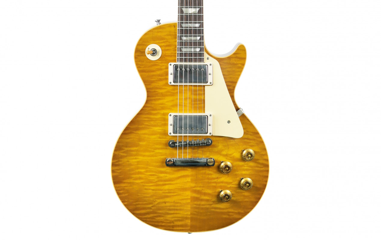 Non esiste una chitarra più emblematica per il marchio Gibson della 1959 Les Paul Standard. Quando venne introdotta non fu un modello di successo, ne furono vendute meno di 650 unità, ma negli anni venne scelta come strumento da chitarristi del calibro di Jimmy Page, Eric Clapton, Jeff Beck, Duane Allman, Billy Gibbons, Joe Perry, Slash, e divenne leggenda.