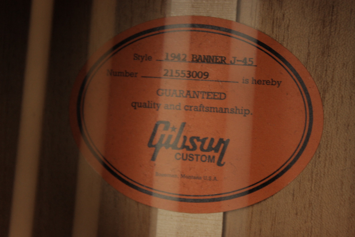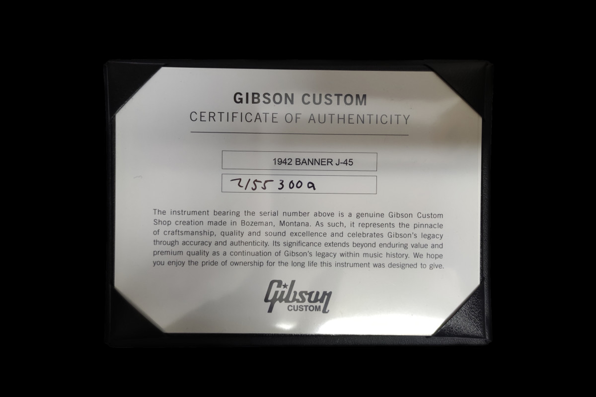 La leggenda del modello J-45 nasce nel lontano 1942 ed oggi rivive, grazie ai liutai del Custom Shop di Gibson Acoustic, nella Gibson Custom Historic 1942 Banner J-45.