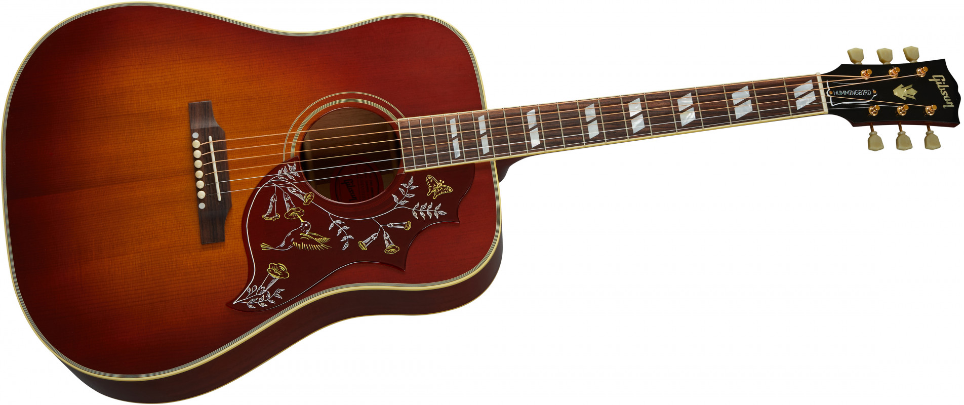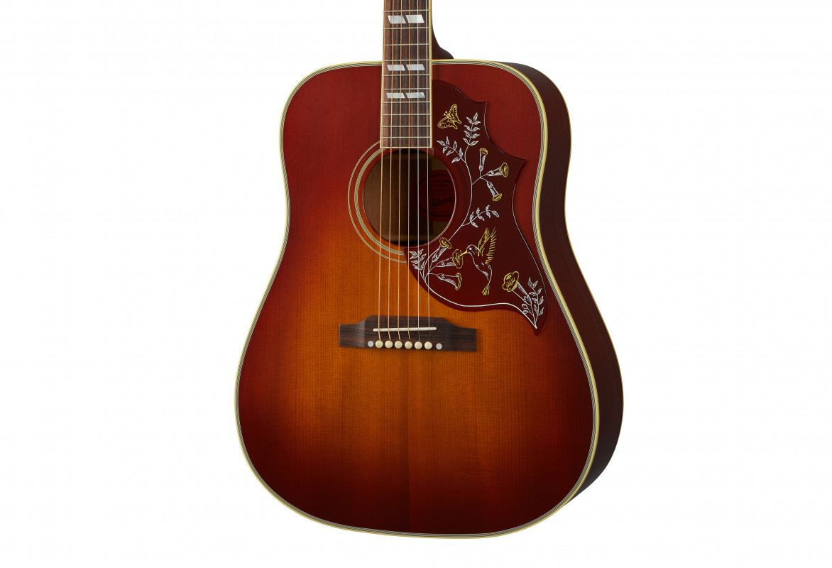 Introdotta in catalogo nel 1960 come la prima Gibson Dreadnought Square Shoulder la Hummingbird è giunta insieme alla "new era" della musica mondiale e ad essa è rimasta indissolubilmente legata.