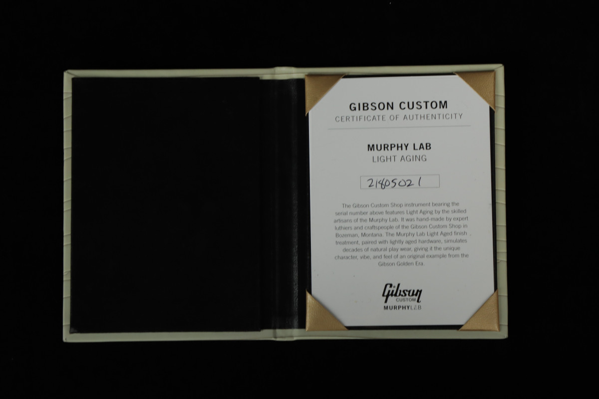 In particolare questa versione è caratterizzata da un trattamento Murphy Lab Light Aged. Il Murphy Lab ricrea alla perfezione e con processi naturali, non manuali, le medesime condizioni di invecchiamento della vernice che troviamo su strumenti vintage originali. Finiture sottilissime, caratterizzate da un evidente e consistente "crackle", dal feeling assolutamente autentico. Sembra veramente di avere tra le mani uno strumento originale vintage ma con tutta la qualità e la performance che oggi solo il Gibson Custom Shop è in grado di offrire.