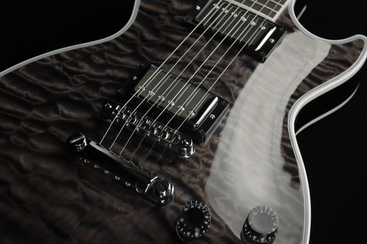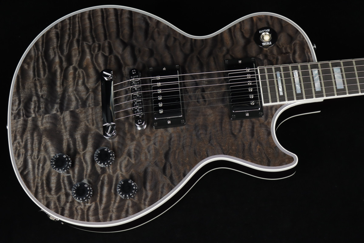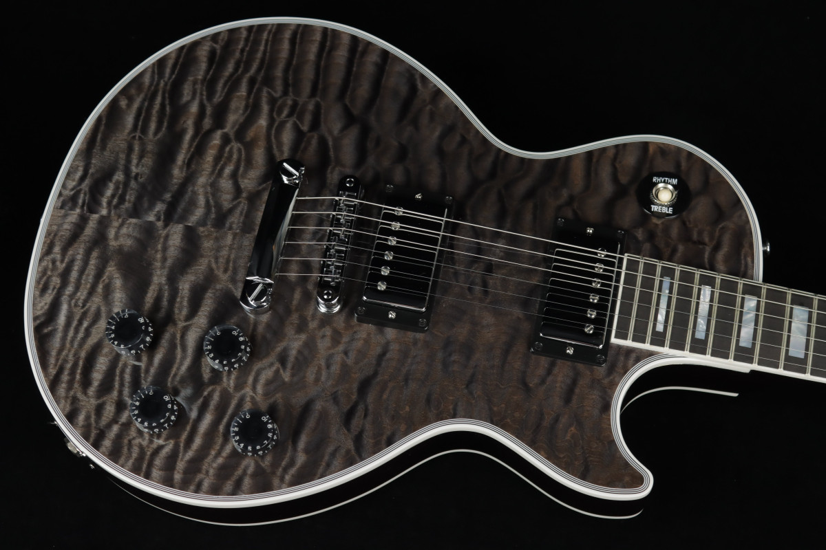 È il caso di questa straordinaria Gibson Custom Les Paul Custom 5A, che abbiamo chiamato "Quilted Wonder" perché merita di distinguersi da tutte le altre. La sua tavola in acero Quilted 5A selezionato è valorizzata da un colore fuori catalogo e da una finitura del corpo “matching”, mentre l’impiallacciatura della paletta riprende lo stesso acero Quilted 5A.