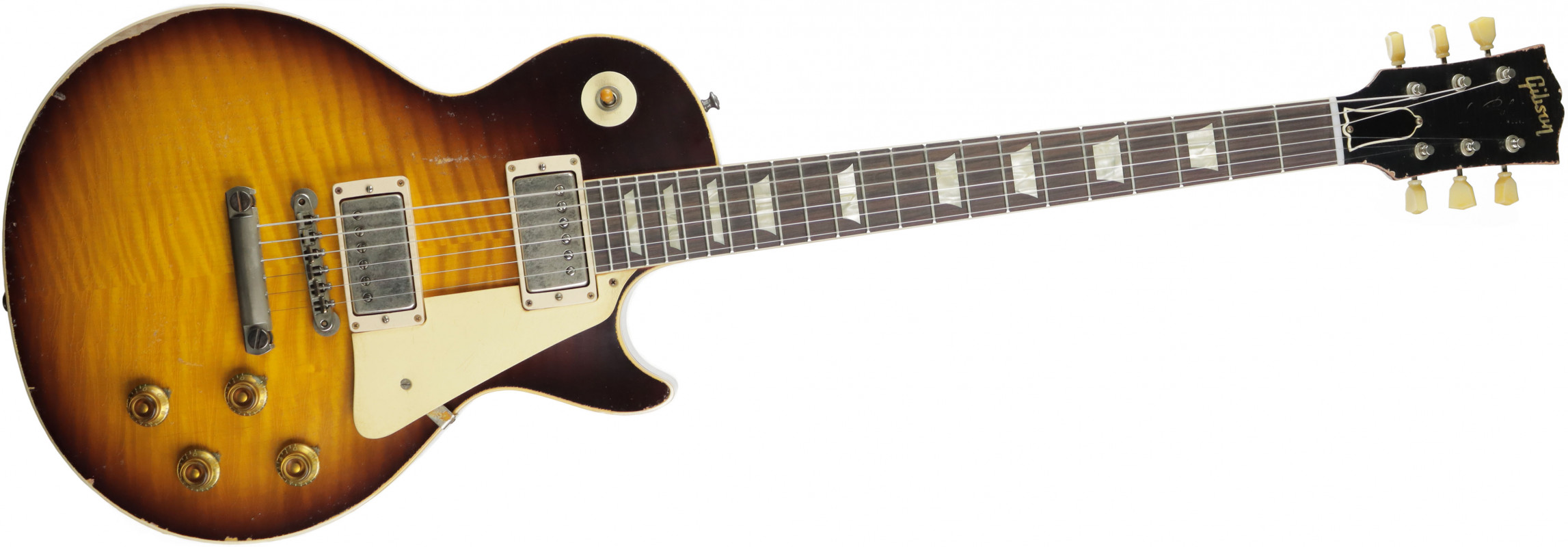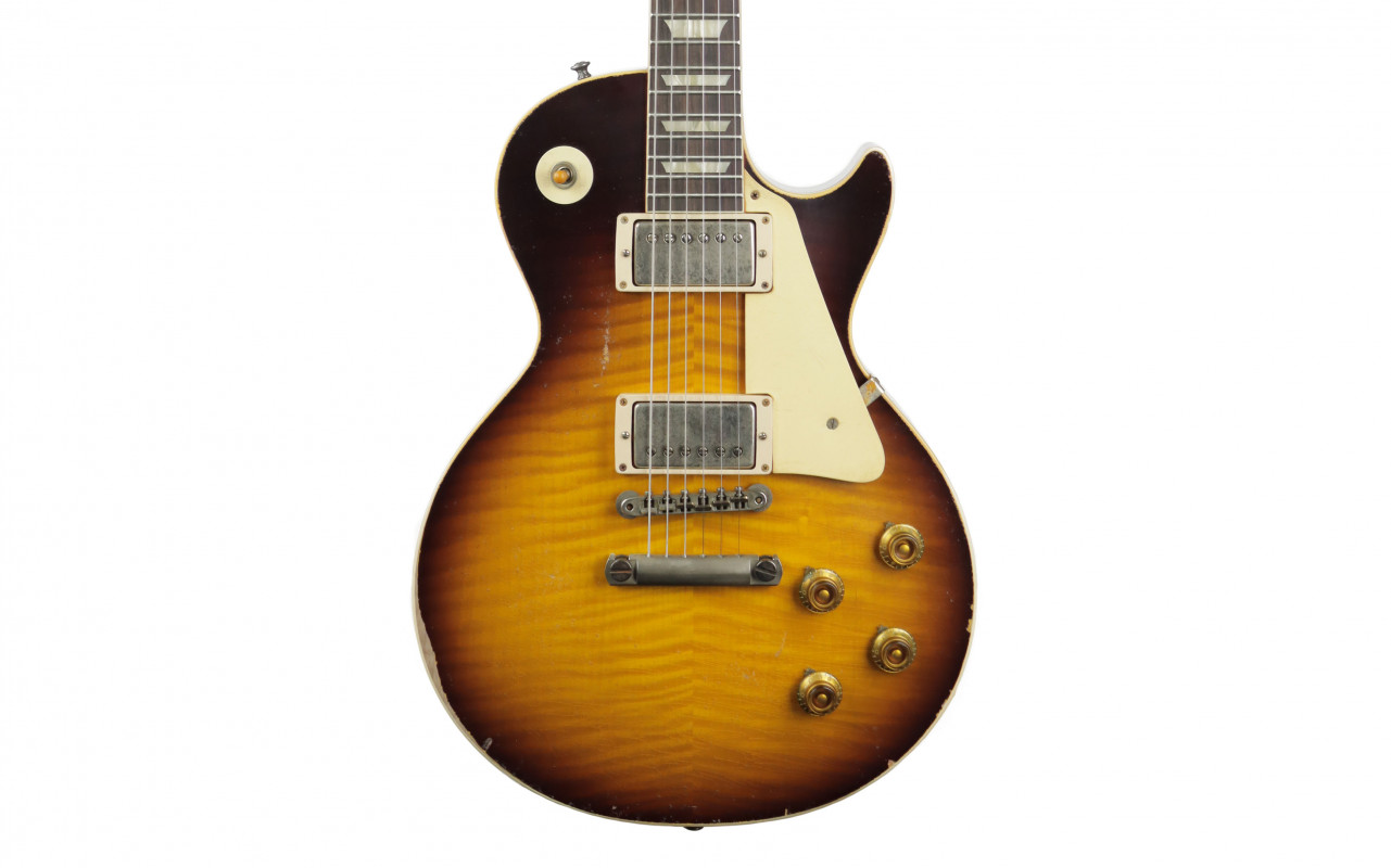In particolare questa Gibson Custom Murphy Lab 1959 Les Paul Standard Reissue Heavy Aged, appartenente alla Gibson Custom Limited Edition Colleciton, riproduce fedelmente la leggendario Les Paul Standard del 1959, anno dell'introduzione delle prime tavole figured, in una finitura mutuata dalla celebre pubblicazione "Beauty of The Burst" e con una tavola fiammata selezionata a mano.