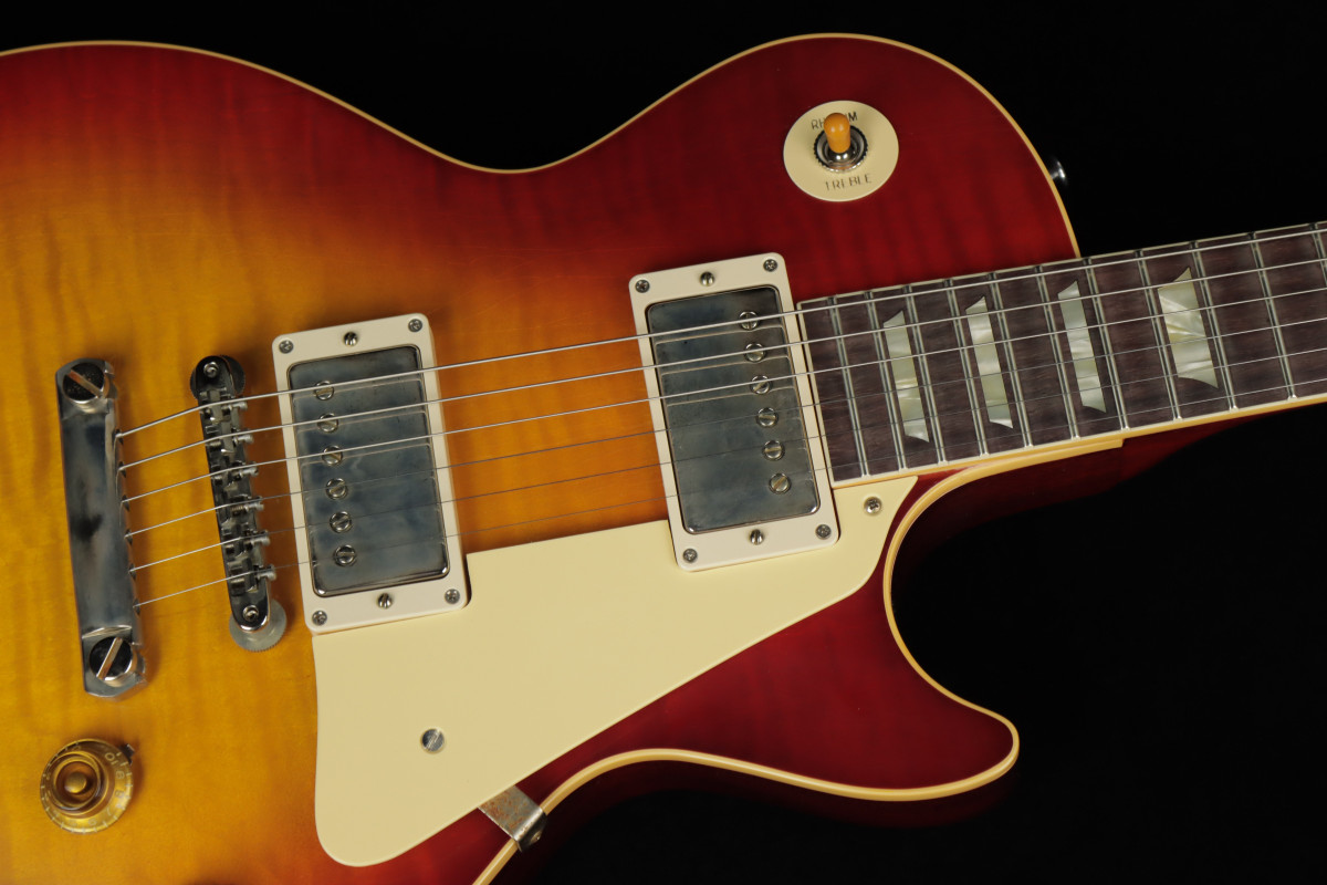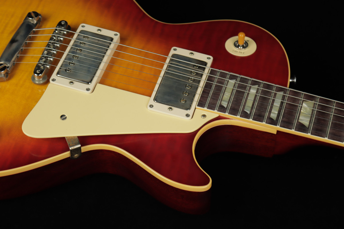 In particolare questa Gibson Custom Murphy Lab 1959 Les Paul Standard Reissue Ultra Light Aged riproduce fedelmente la leggendaria Les Paul Standard del 1959, anno dell'introduzione delle prime tavole figured.