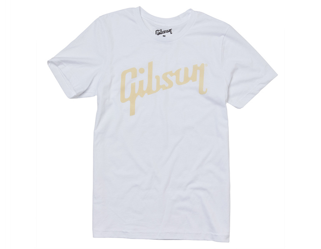 T-shirt bianca con l'iconico logo Gibson in versione "Distressed".