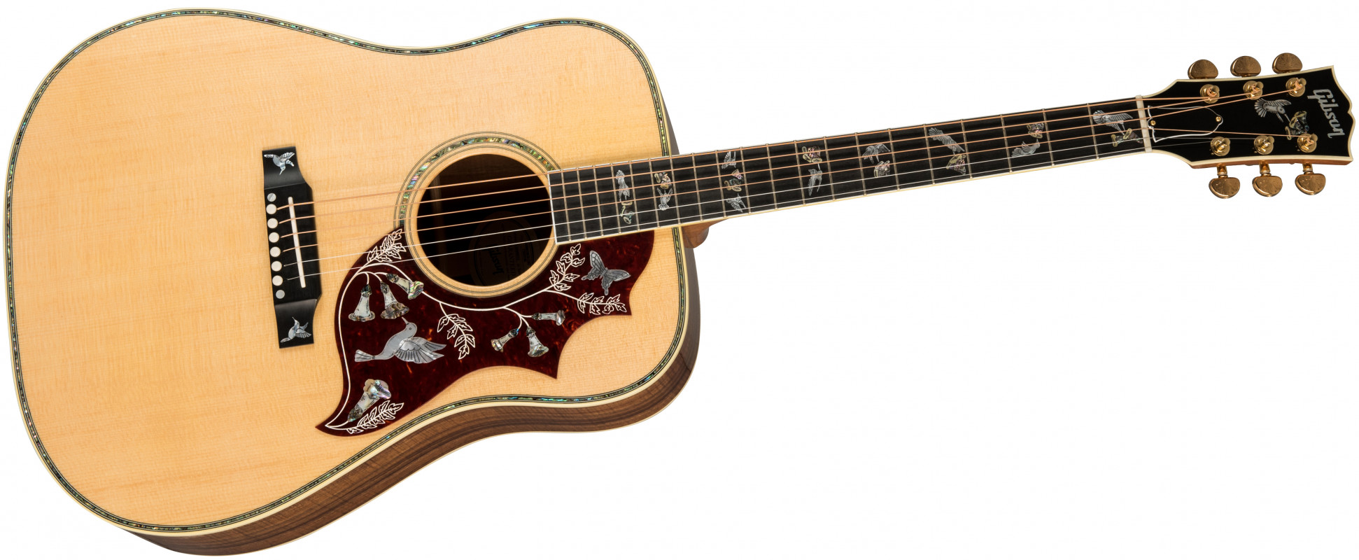 La combinazione di legno di abete rosso e Koa permette di ottenere un suono brillante, ma equilibrato, fedele alla reputazione della Hummingbird.