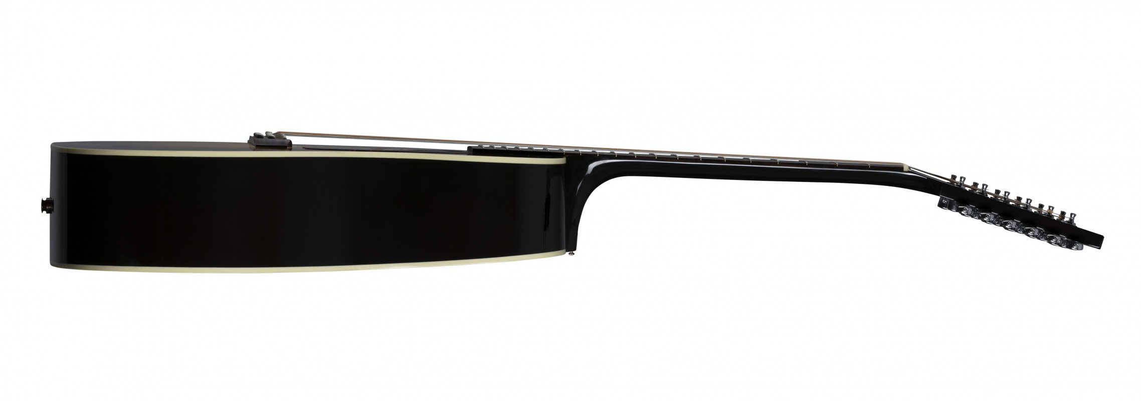 E' caratterizzata da una catenatura a pettine, da un binding a 4 strati sul top, intarsi in madreperla e meccaniche vintage nickelate. La tavola è realizzata in abete Sitka massello, fondo e fasce in mogano dell'Hoduras massello, ponte e tastiera in palissandro.