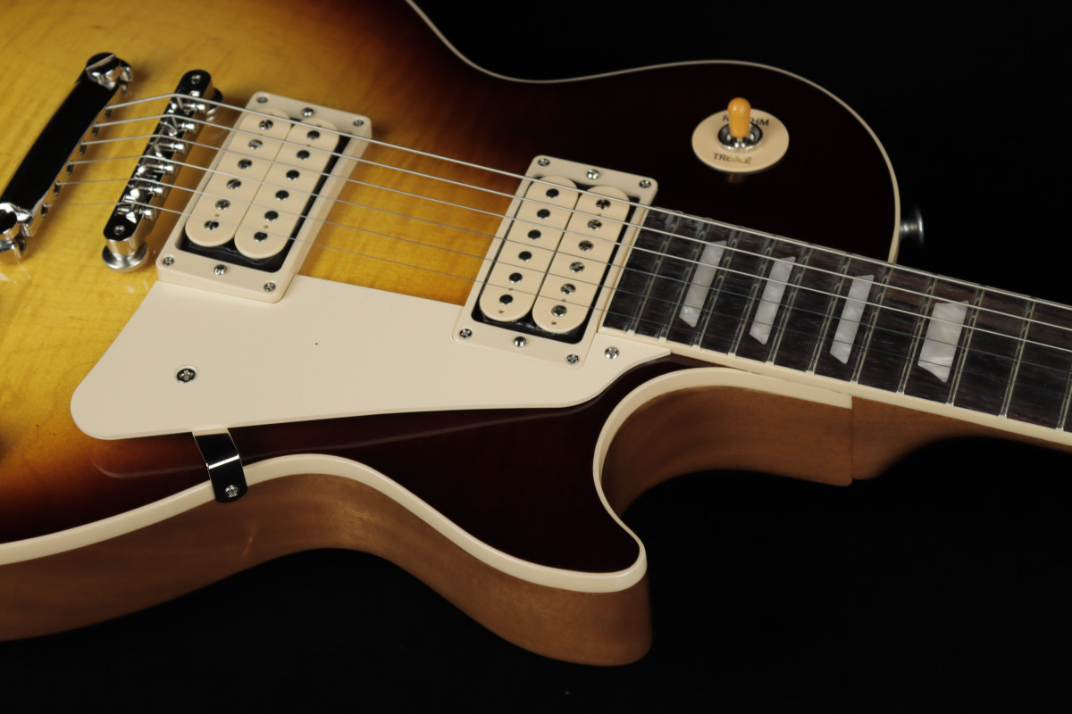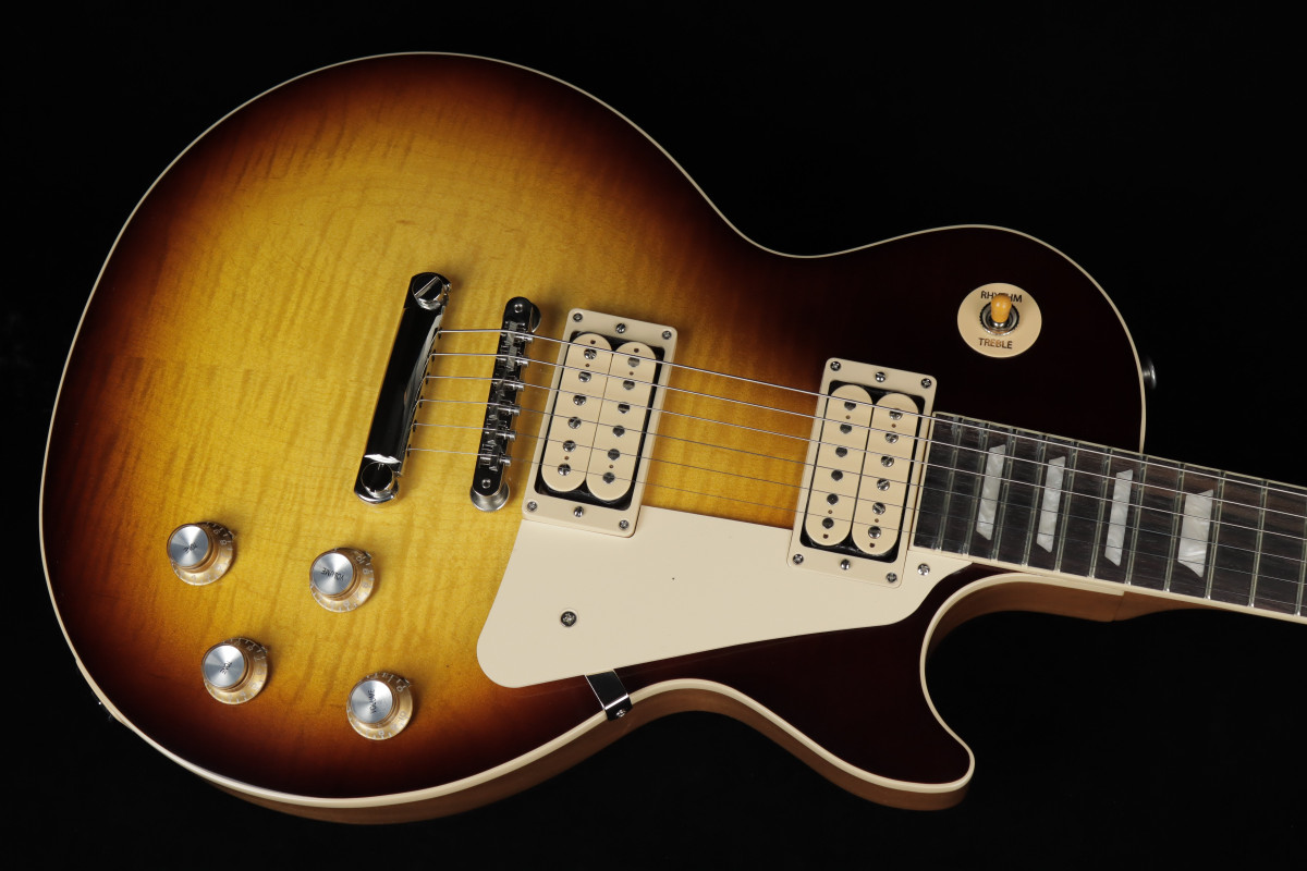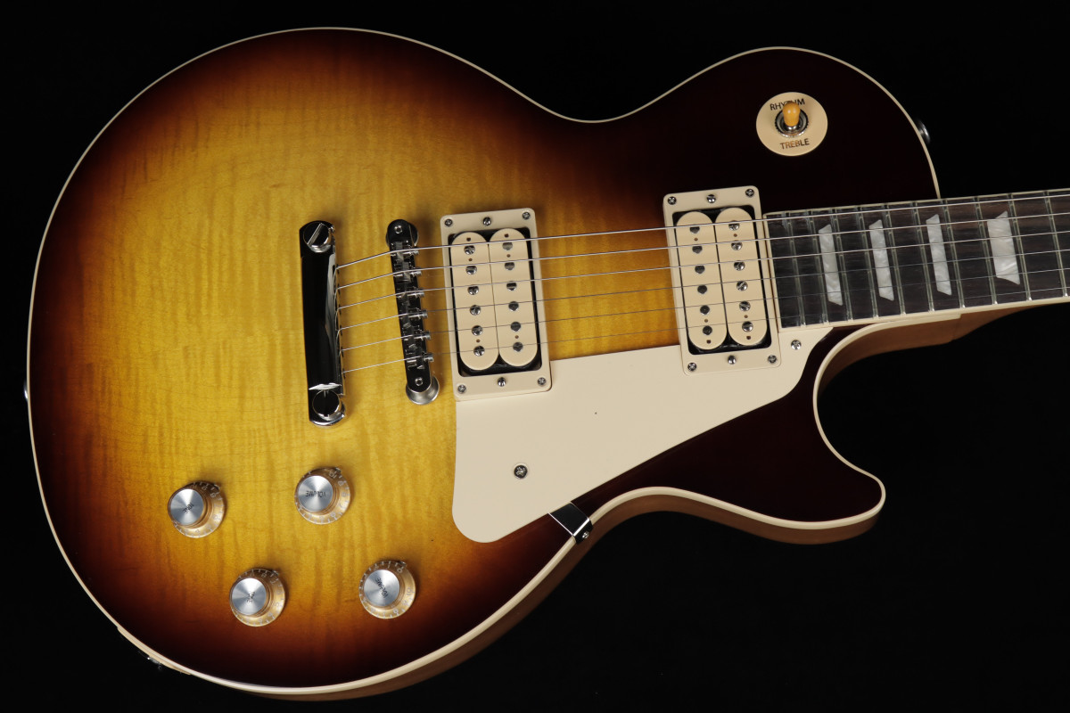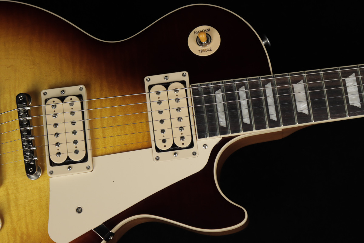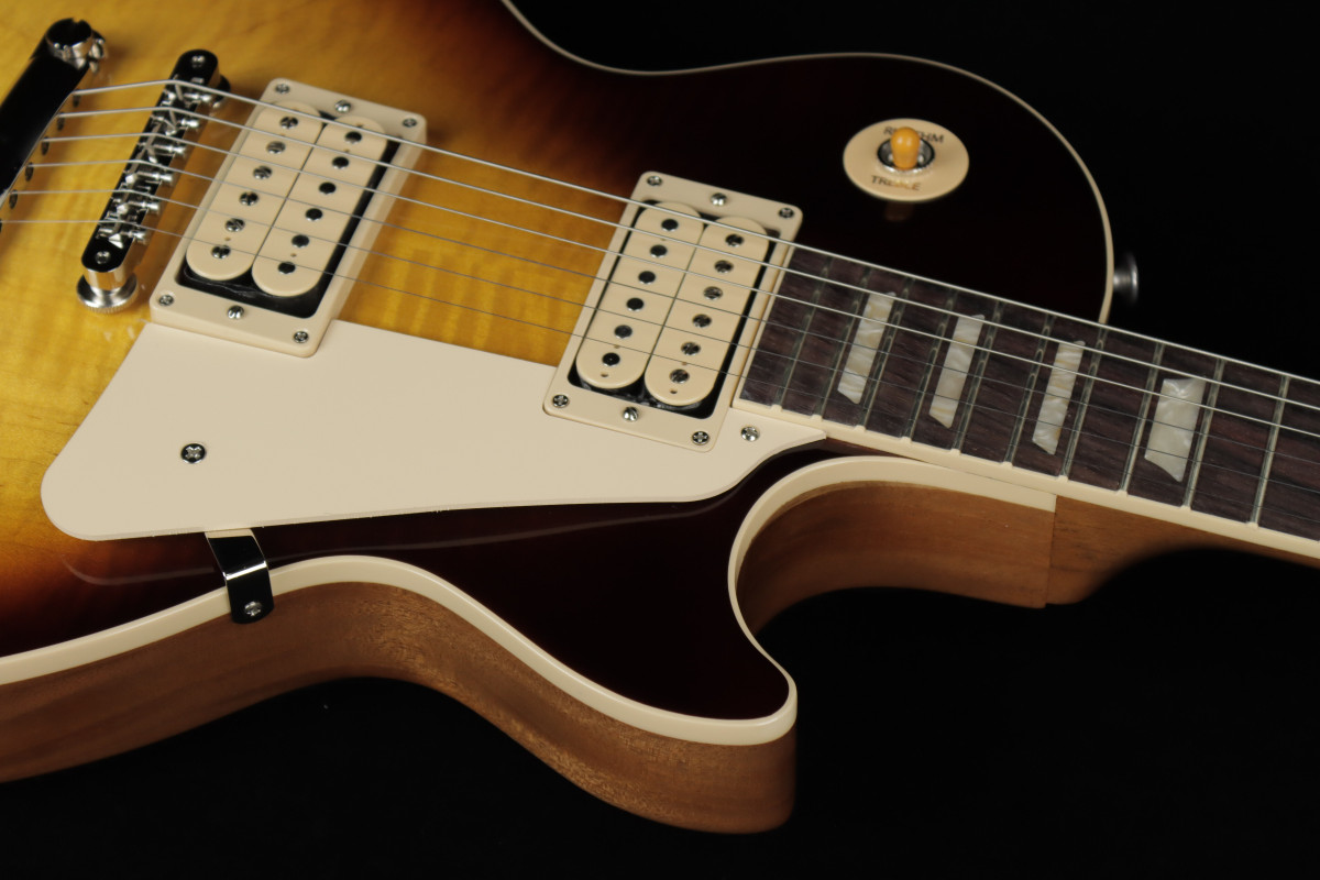 Naturalmente, restano tutte le caratteristiche che hanno reso iconica la Les Paul Standard 60s: corpo in mogano massello non alleggerito, top in acero AA fiammato, manico in mogano con profilo SlimTaper anni ‘60, tastiera in palissandro, 22 tasti Medium Jumbo e intarsi Trapezoid.