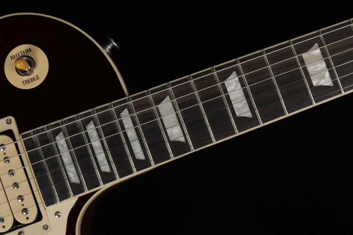 Il secondo aspetto è la finitura. I colori sono varianti “Vintage” delle classiche finiture in nitrocellulosa. Le finiture lucide standard riproducono l’aspetto che le chitarre nuove avevano negli anni ‘60, mentre le finiture Vintage della Les Paul Standard 60s Double Trouble sono leggermente scolorite rispetto alle versioni standard, ricreando il sottile invecchiamento naturale della vernice nel tempo.