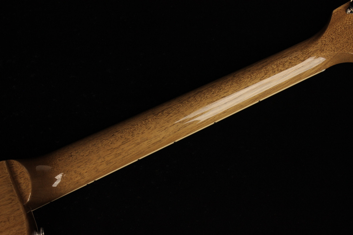 Troviamo il consueto abbinamento di materiali per il corpo, ovvero mogano senza fori di alleggerimento ed acero. Il manico ha un profilo 60's Slim Taper, dalle dimensioni ridotte ed estremamente veloce.