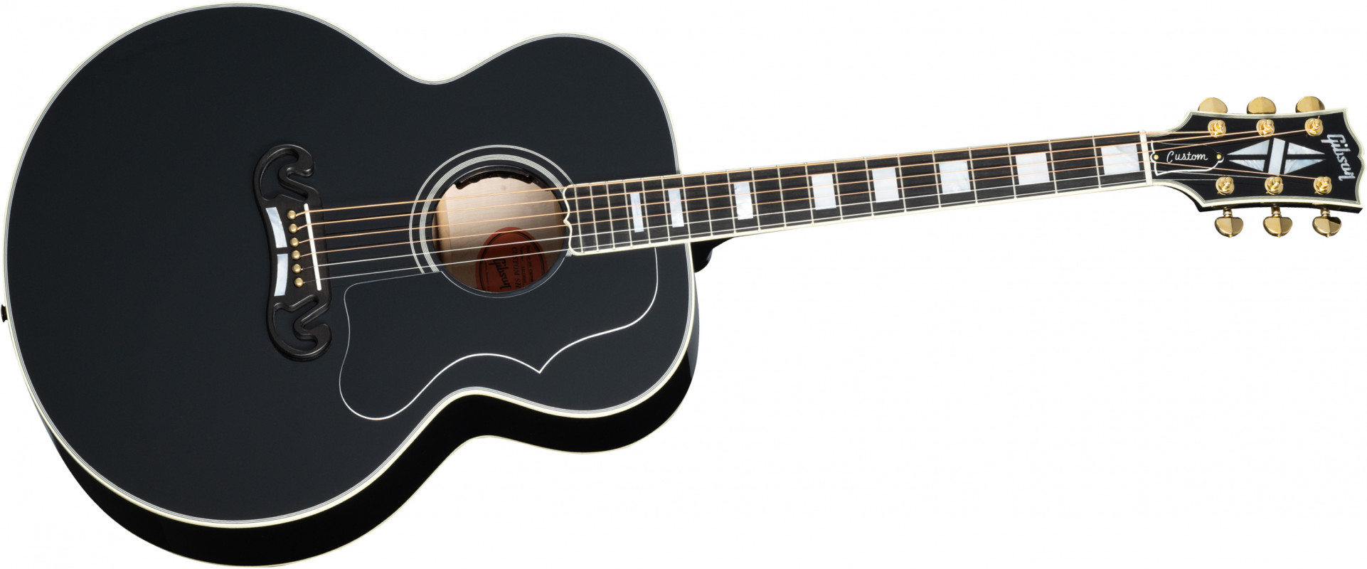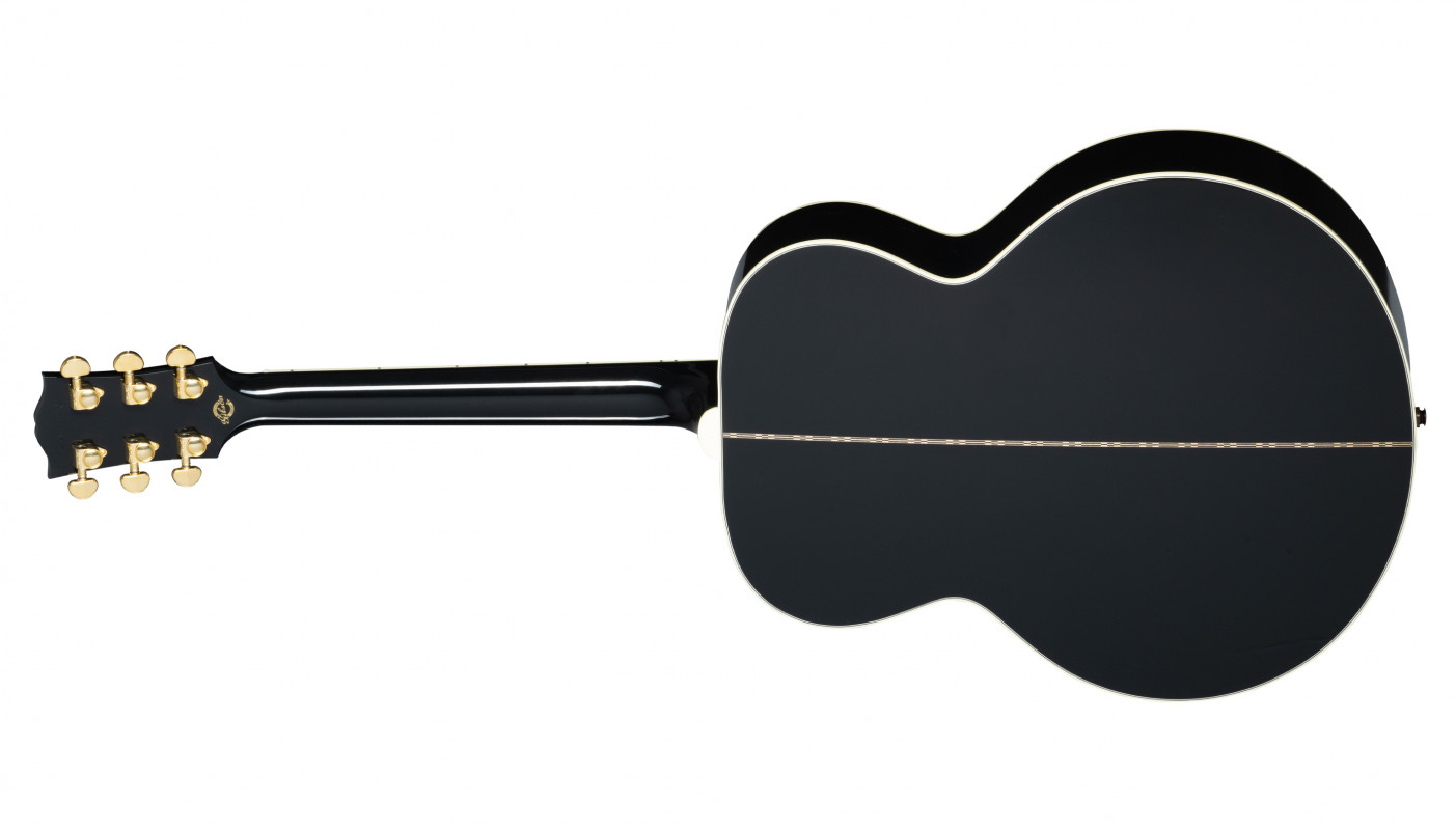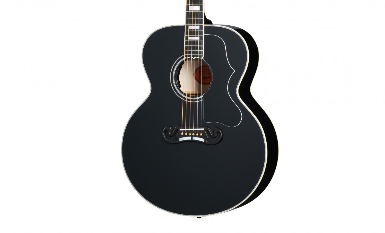 Questa versione della SJ-200 presenta le tipiche caratteristiche estetiche che si trovano sulle Les Paul™ Custom tra cui: finitura in nitrocellulosa "Ebony", "multi-ply" binding sulla tavola e sul fondo, paletta Les Paul Custom, tastiera in ebano con intarsi in madreperla, ponte stile "Mustache" in ebano e meccaniche Grover® Gold Rotomatic®.