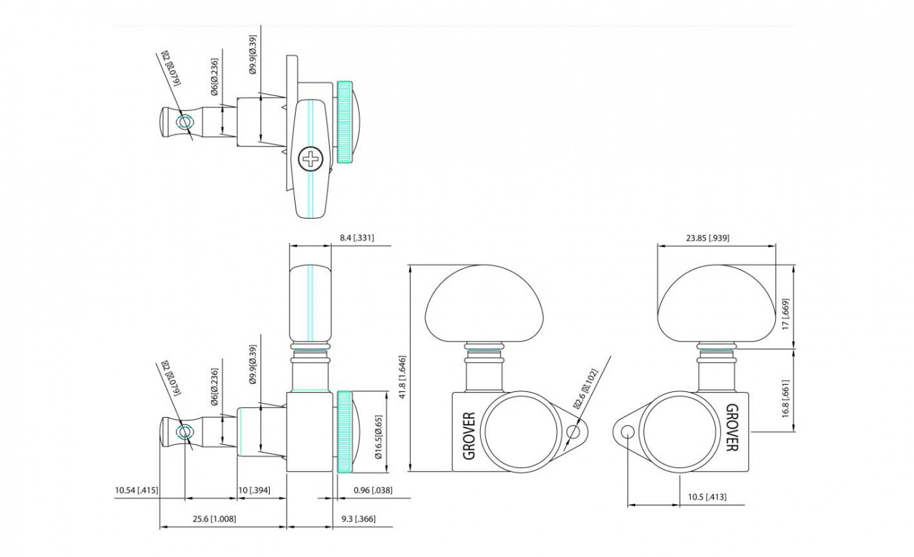 Le Grover Roto-Grip Locking Rotomatics® sono caratterizzate da un design con ratio 18:1 e da un meccanismo di blocco della corda. Per installare la corda è sufficiente farla passare nel foro passante dell'alberino e chiudere il blocco nella parte posteriore della meccanica. Tenuta dell'accordatura garantita e elevata semplicità di utilizzo. Include hardware di montaggio.
