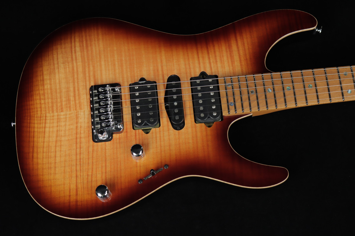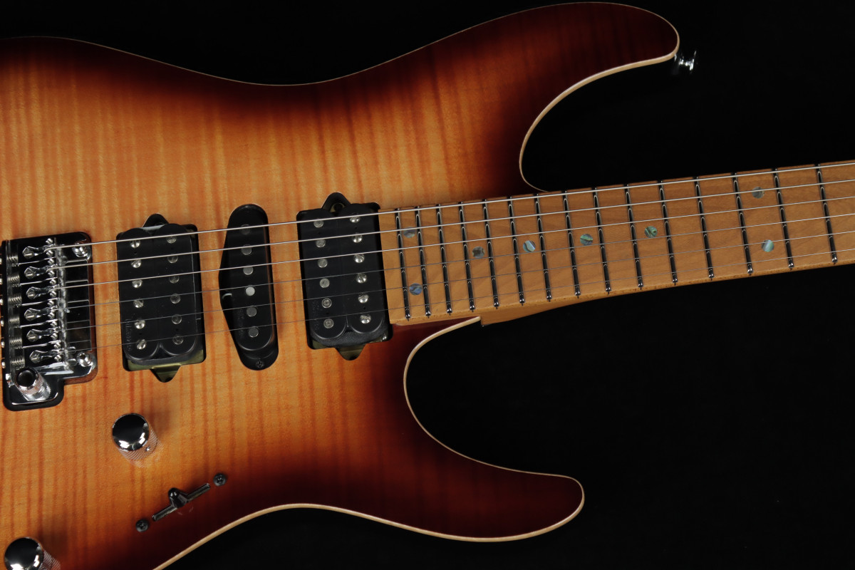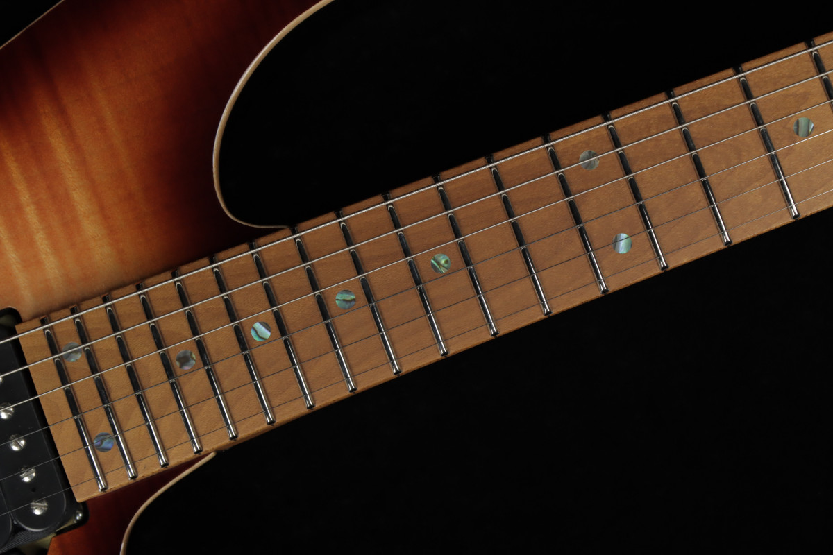 Il corpo è realizzato in ontano con tavola in acero fiammato, mentre il manico in acero "Roasted" è dotato di un profilo AZ Oval "C" ed è abbinato ad una tastiera in palissandro da 22 tasti Jumbo in acciaio Stainless con raggio di curvatura da 12".